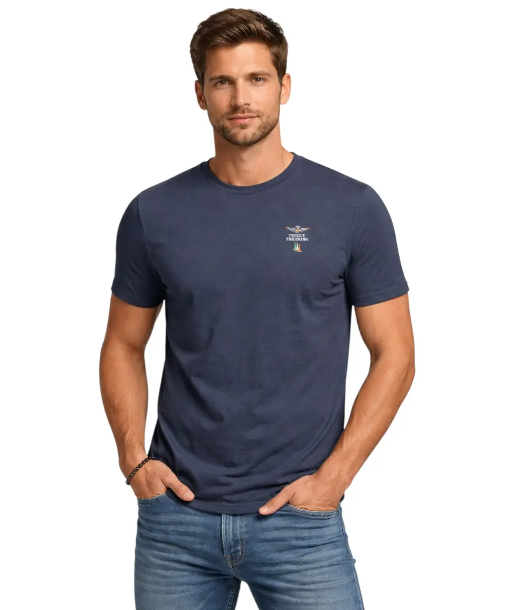 Το κλασικό σχέδιο με κοντά μανίκια και στρογγυλή λαιμόκοψη (girocollo) συνδυάζεται με το διακριτικό λογότυπο Aeronautica Militare στο στήθος, για μια εμφάνιση που αποπνέει απλότητα και στυλ.