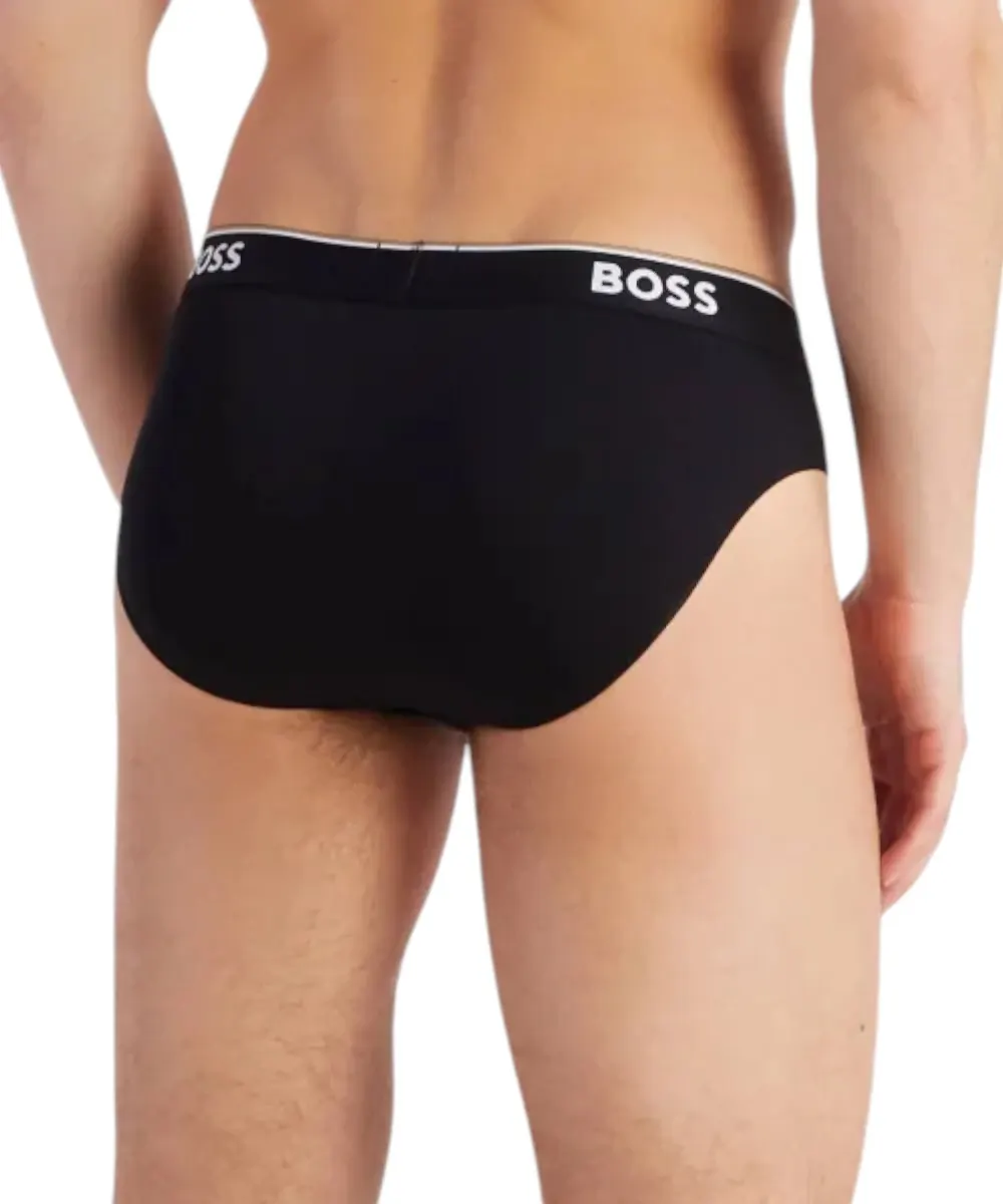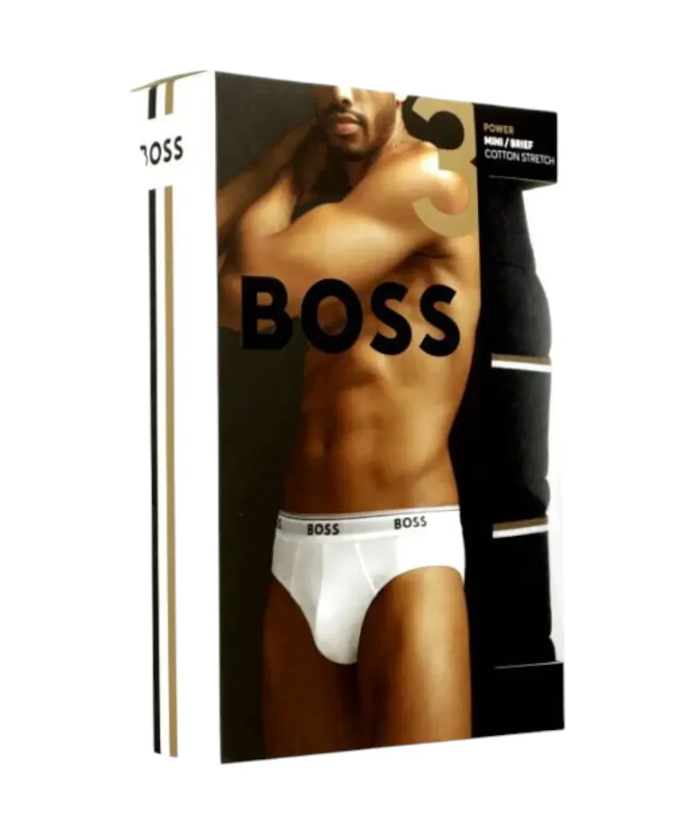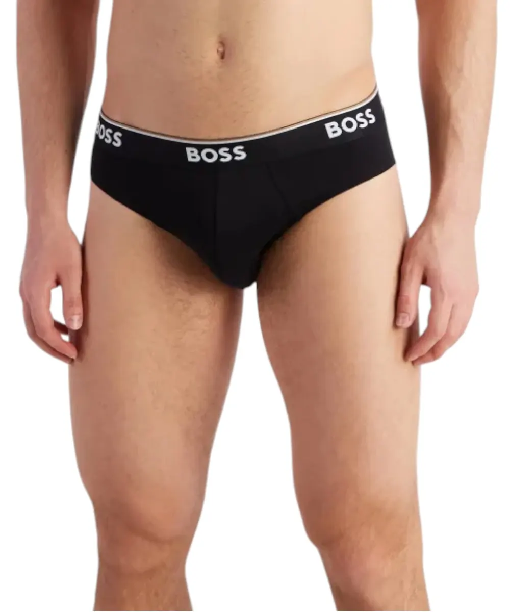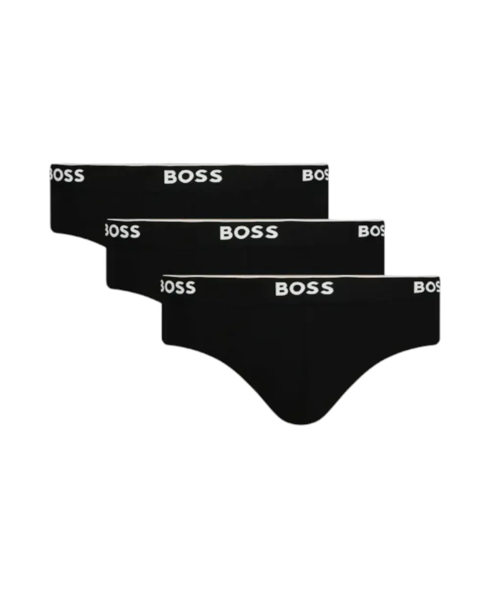 Ανδρικά σλιπάκια, πακέτο τριών τεμαχίων από την εταιρία Hugo Boss, κατασκευασμένα από νήματα βαμβακιού αναμεμειγμένα με ελαστικό για καλύτερη εφαρμογή στο σώμα. Κατά μήκος στο λάστιχο αναγράφεται το λογότυπο της εταιρίας από την συλλογή Boss.