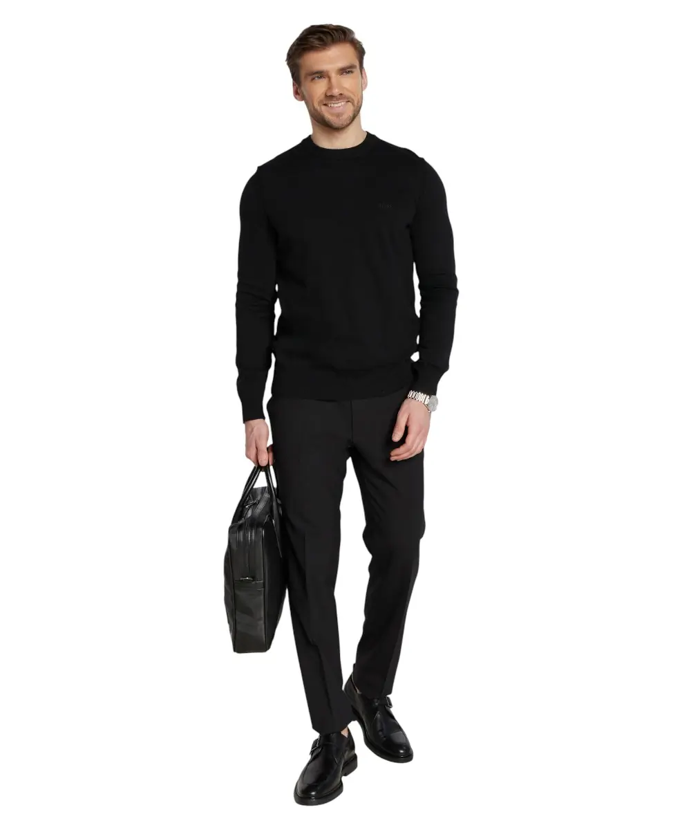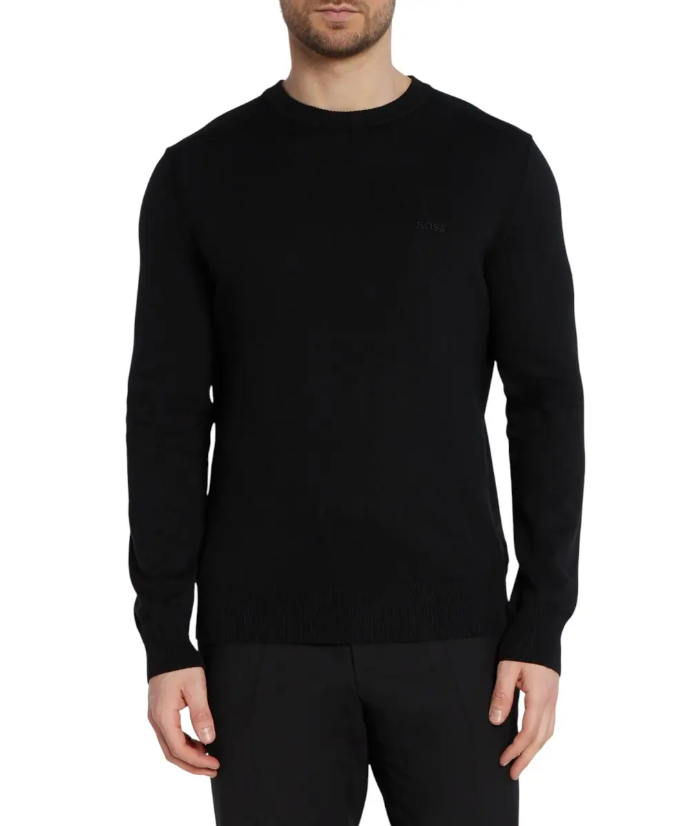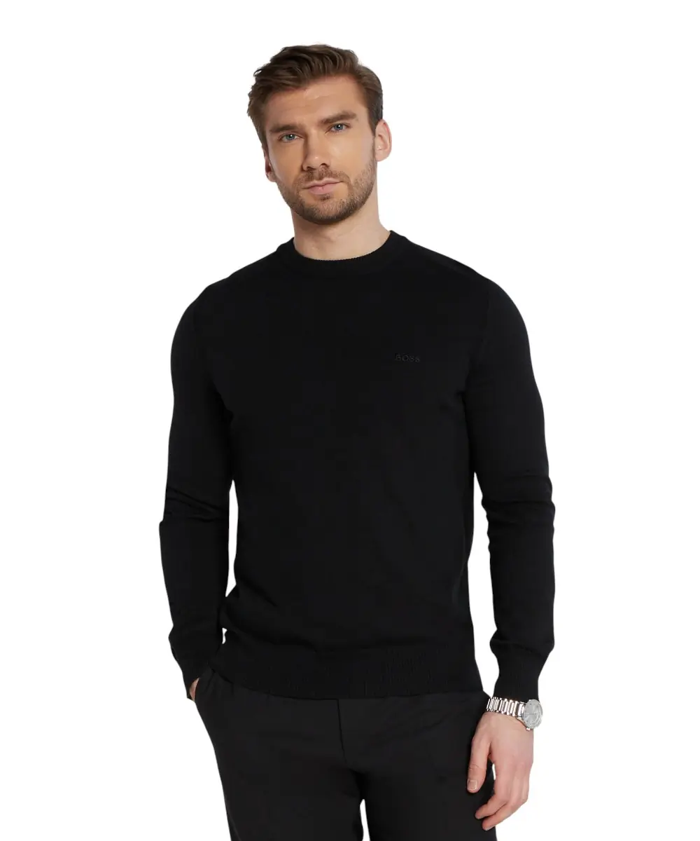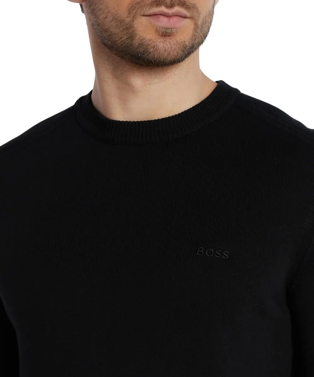 Το ανδρικό πλεκτό πουλόβερ BOSS Asac C σε διαχρονικό μαύρο χρώμα ενσαρκώνει την κομψότητα και την άνεση. Με την ίσια, κανονική του εφαρμογή, το Asac C προσφέρει μια άνετη σιλουέτα. Η στρογγυλή λαιμόκοψη και το απλικέ λογότυπο στο στήθος προσδίδουν στο πουλόβερ μια κλασική πινελιά. Ο ριμπ γιακάς, το στρίφωμα και οι μανσέτες προσφέρουν μια εκλεπτυσμένη υφή. Το λεπτό πλεκτό ύφασμα και το μονόχρωμο χρώμα τονίζουν την διακριτική κομψότητα του πουλόβερ. Το πουλόβερ διαθέτει μια πολύ απαλή αίσθηση, εξασφαλίζοντας άνετη εφαρμογή. Ένα ευέλικτο ένδυμα για μια κομψή εμφάνιση με διαχρονική γοητεία.