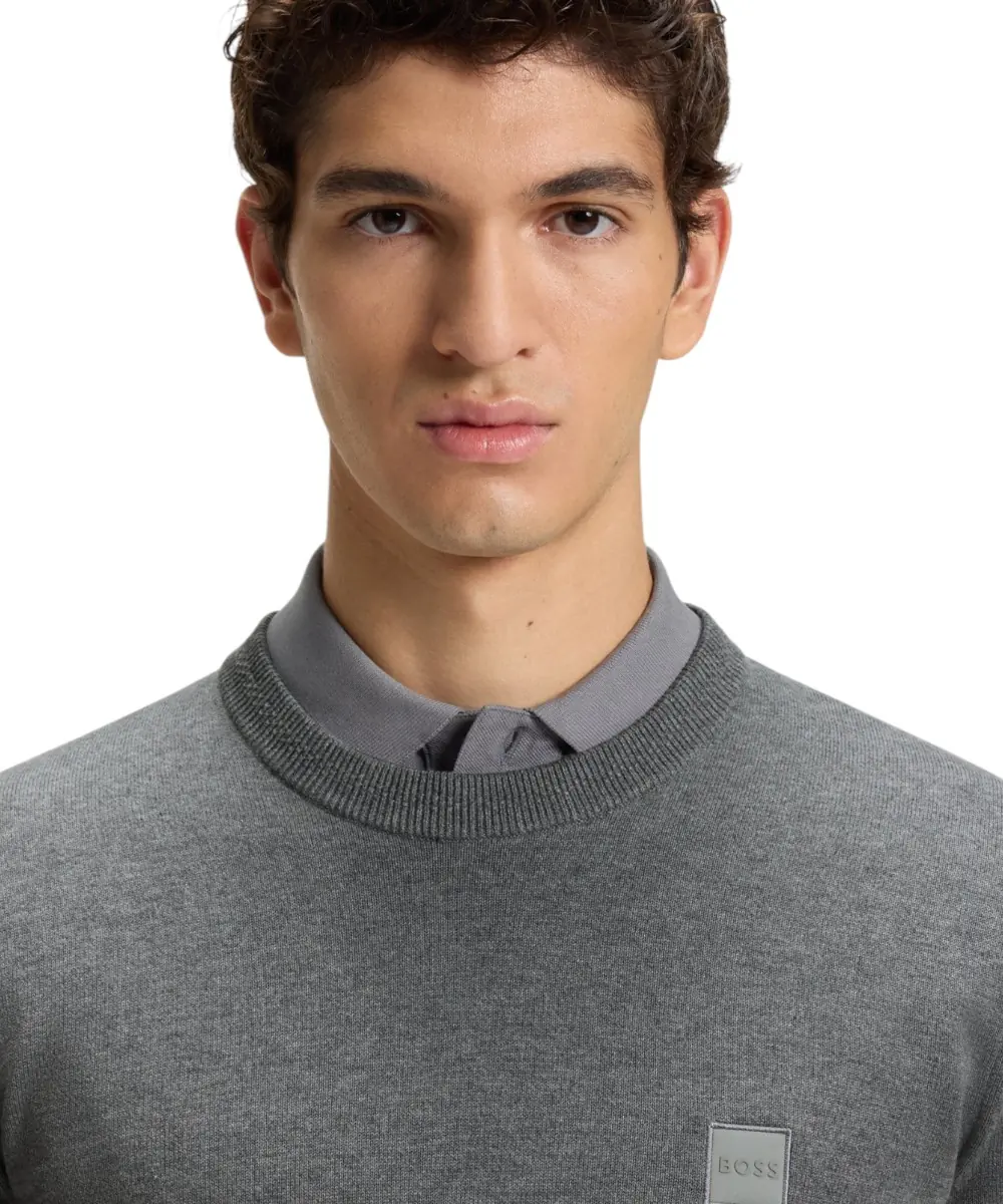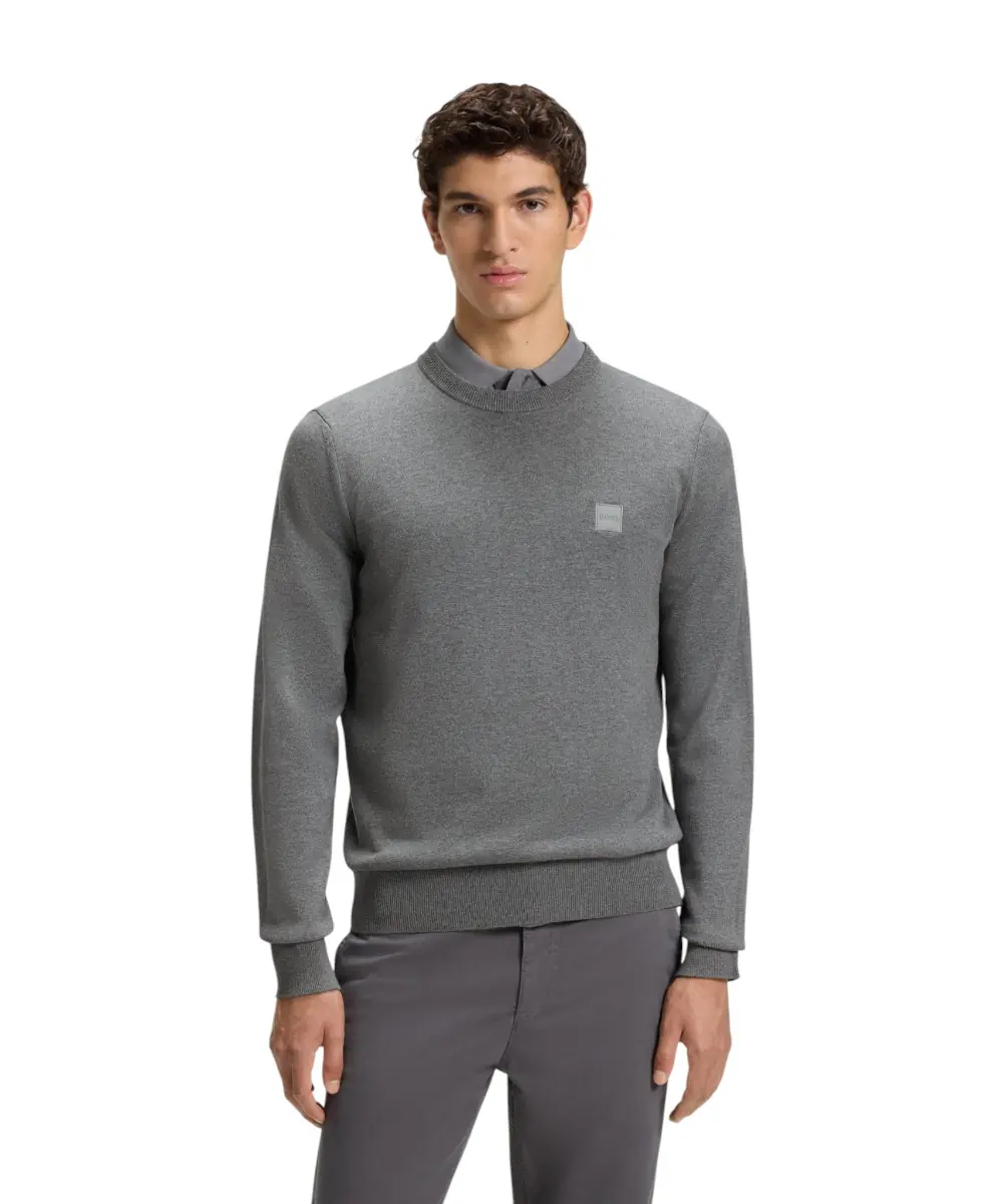 Διακοσμημένο με έμπλαστρο λογότυπου, αυτό το πουλόβερ BOSS Menswear είναι πλεκτό από νήμα βαμβακιού-κασμίρ για πολυτελή αίσθηση στην καθημερινότητα. Άνετη, ίσια γραμμή.