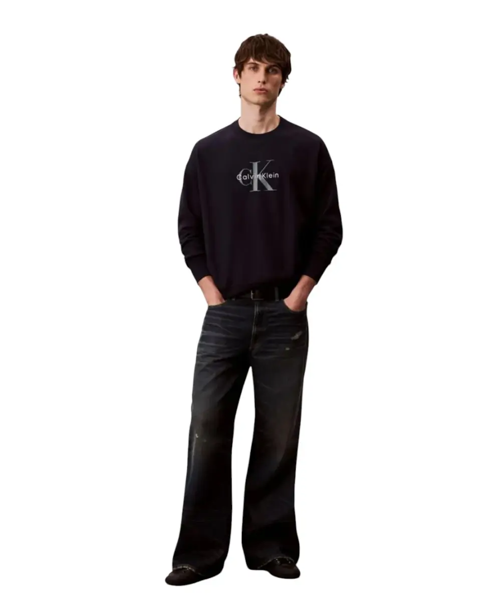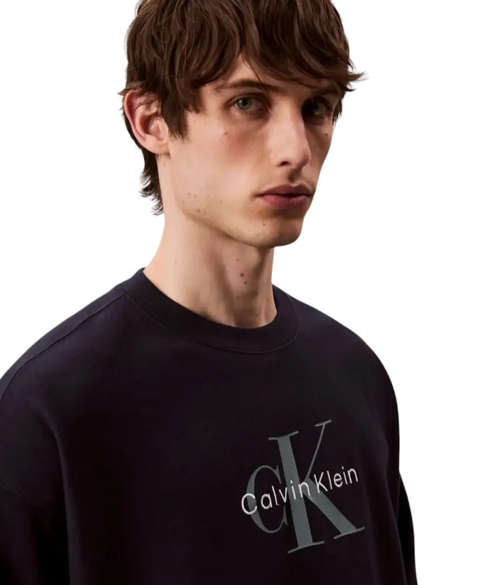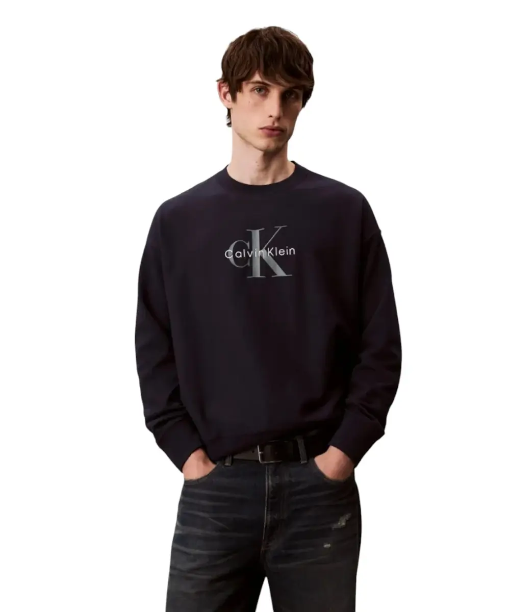Calvin Klein – Ανδρικό Φούτερ Hoodie 350Terry Monologo Loose Fit LV04RD242G-CEF Μπλε Σκούρο