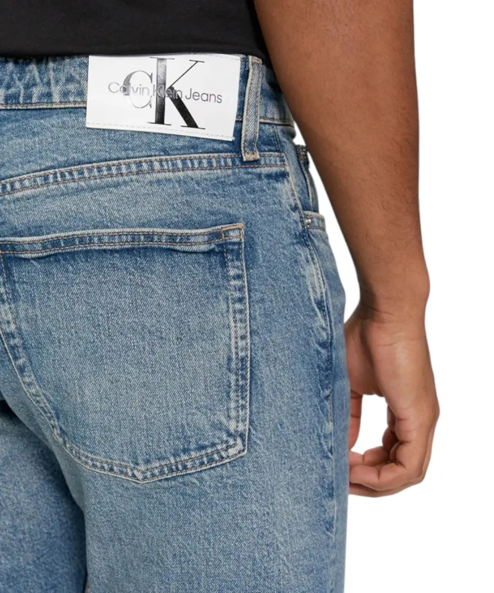 Σύγχρονο ανδρικό jeans της Calvin Klein που συνδυάζει κομψότητα και άνεση για καθημερινές εμφανίσεις. Η slim fit γραμμή αγκαλιάζει το σώμα προσφέροντας εφαρμογή που είναι στενή αλλά άνετη, δημιουργώντας ένα μοντέρνο και καθαρό denim look.