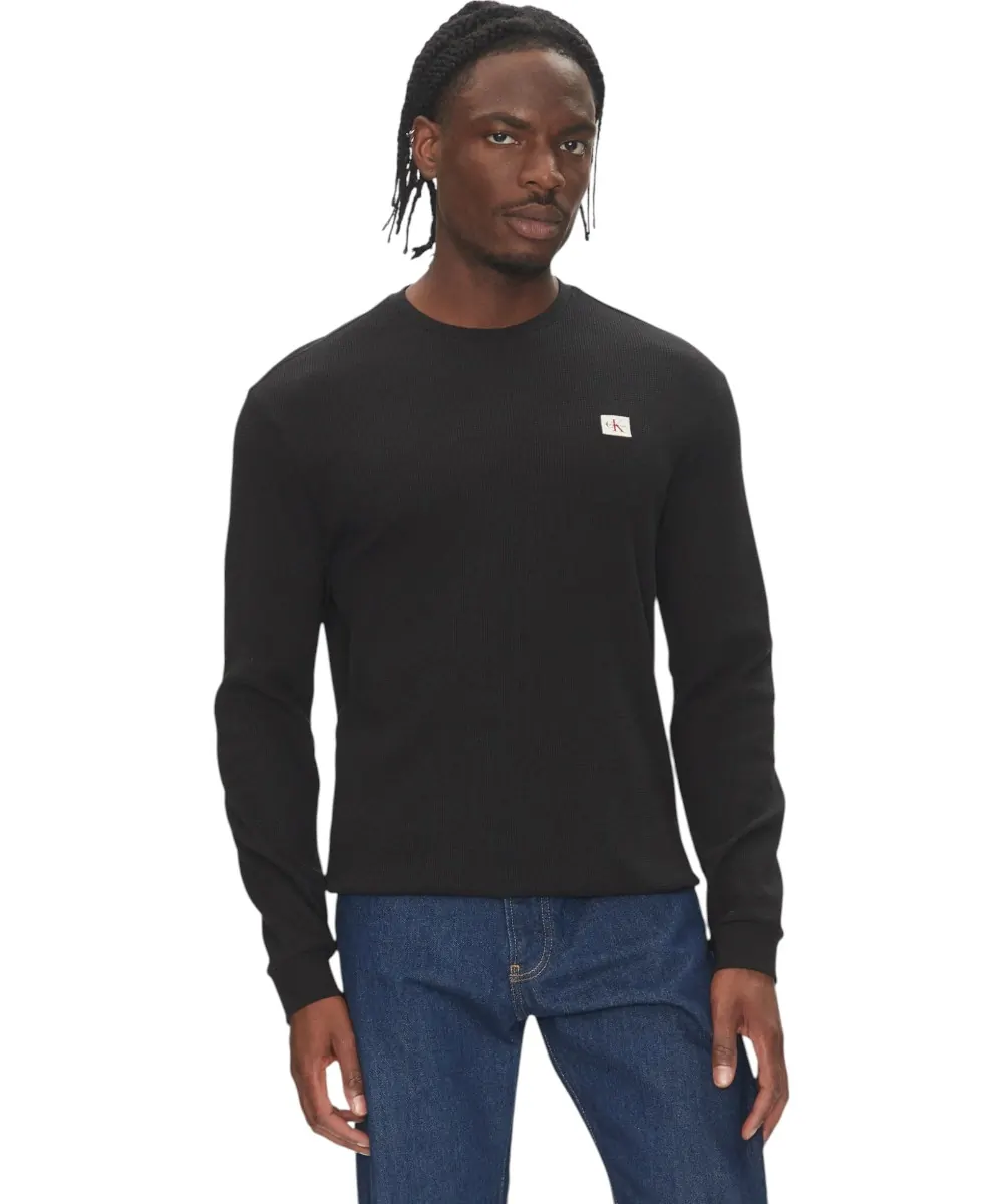Calvin Klein – Ανδρικό Πουλόβερ Badge Waffle LS Tofu LV040EM217-UB1 Μαύρο