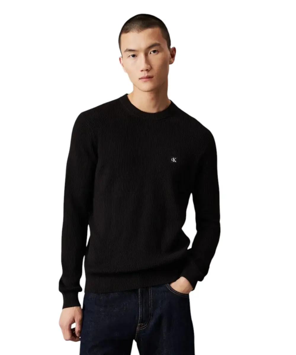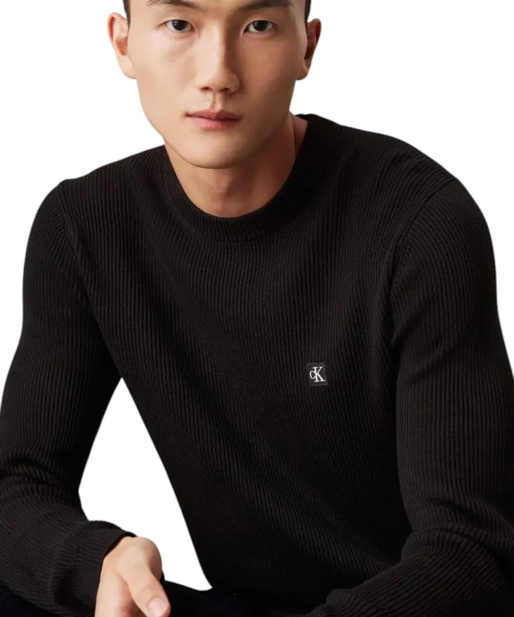 Calvin Klein – Ανδρικό Πουλόβερ Rib Regular Fit J30J324598-BEH Μαύρο