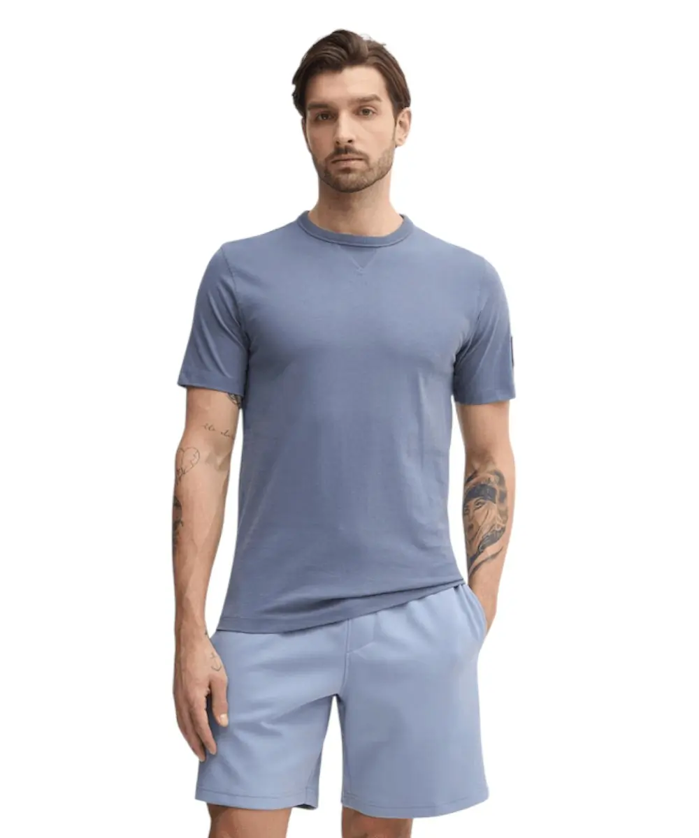 – Στρογγυλή λαιμόκοψη με ραβδώσεις.