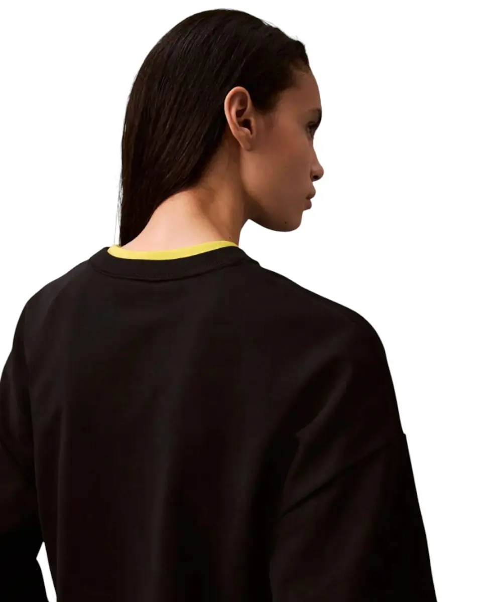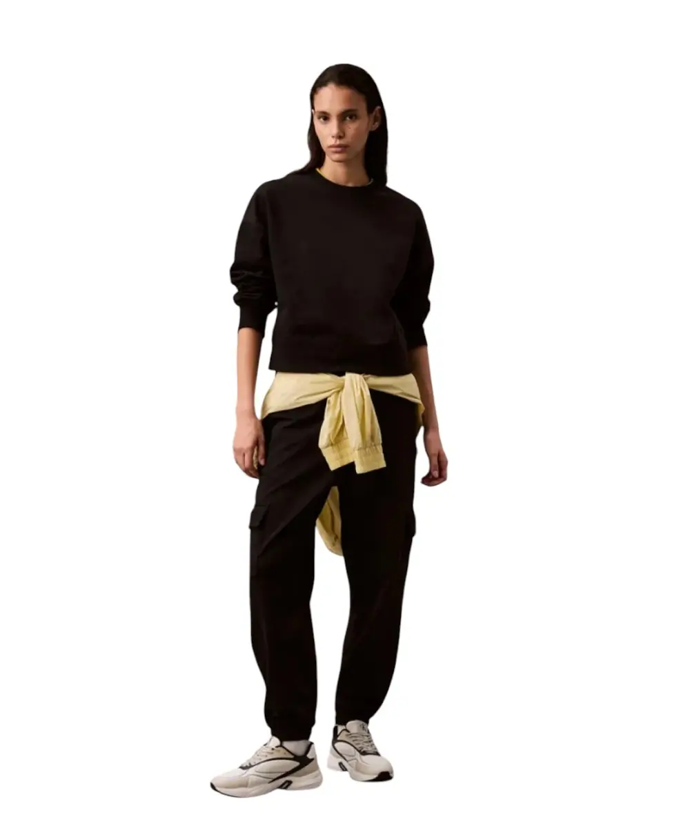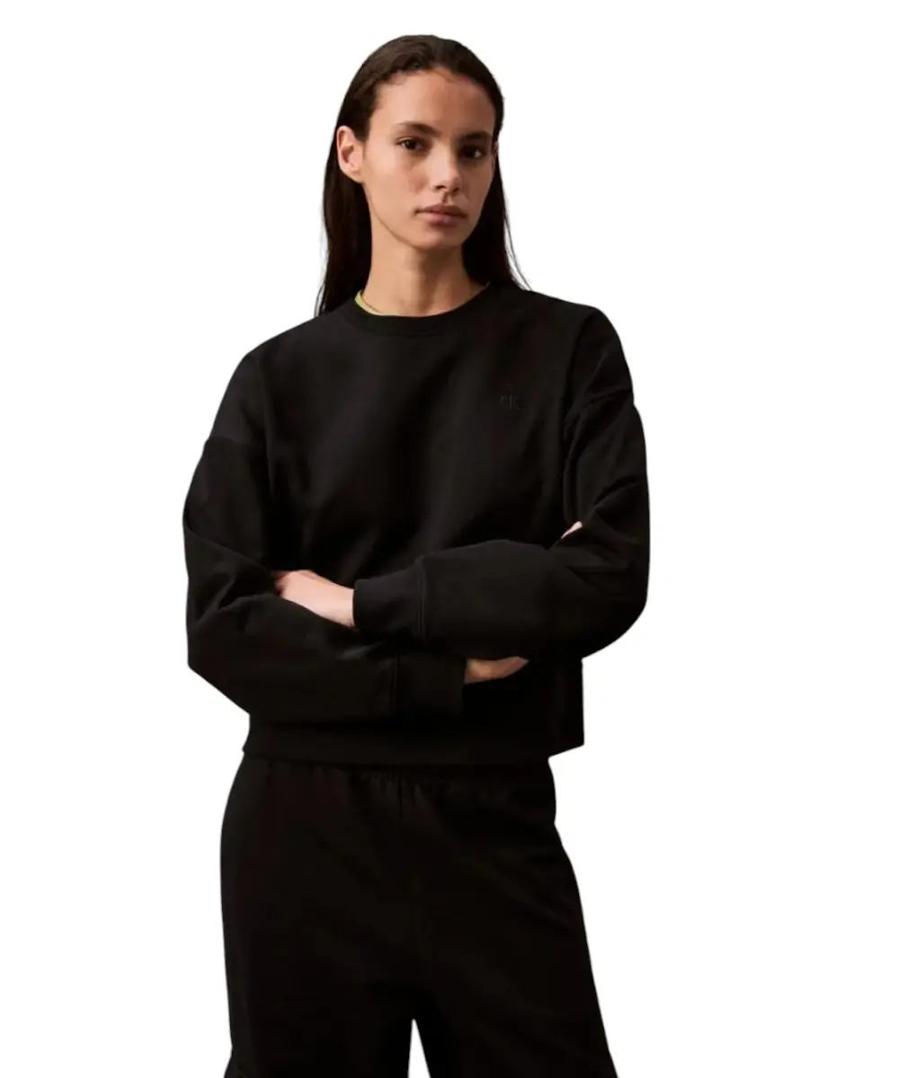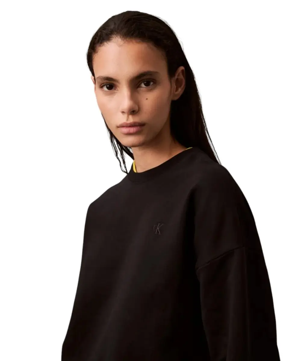 Κατασκευασμένο από premium βαμβακερό terry, με υψηλή περιεκτικότητα σε αναγεννητικό βαμβάκι, προσφέρει απαλή αίσθηση, άνεση και ανθεκτικότητα. Η άνετη εφαρμογή, η κανονική λαιμόκοψη και οι ριπ λεπτομέρειες σε γιακά, μανσέτες και τελείωμα εξασφαλίζουν σταθερή εφαρμογή και διαχρονικό στυλ. Το κεντητό λογότυπο CK στο στήθος ολοκληρώνει την κομψή, premium εμφάνιση.