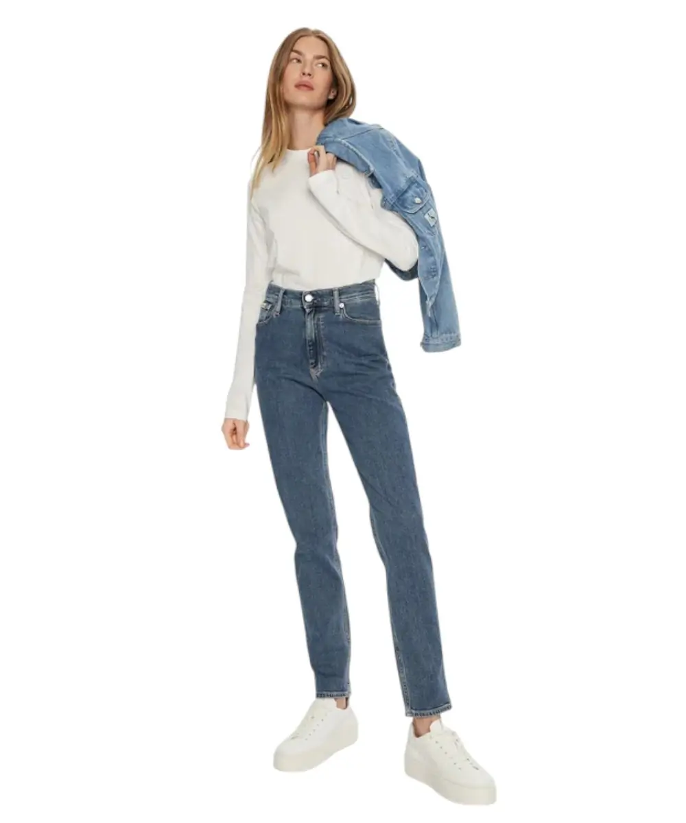 Tζιν παντελόνι από τη συλλογή Calvin Klein Jeans σε στυλ mom υψηλή μέση. Μοντέλο από κατασκευασμένο από ελαφρώς ελαστικό τζιν. Εξαιρετικά άνετο υλικό με υψηλή περιεκτικότητα σε βαμβάκι.