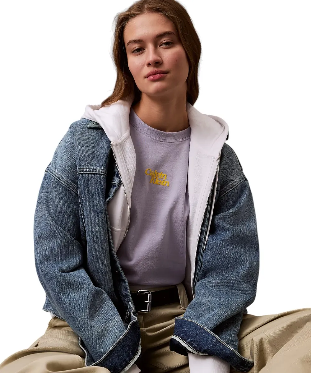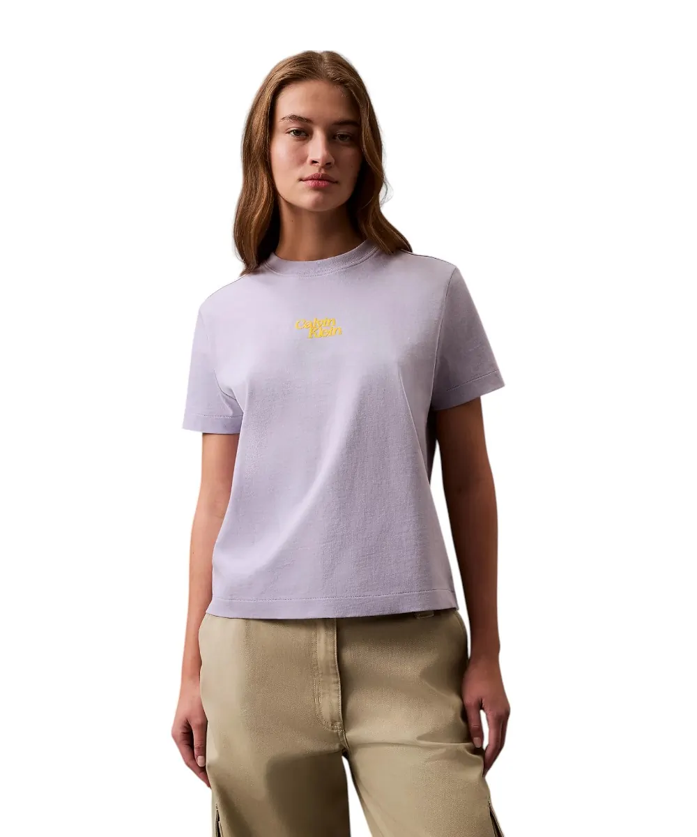 Calvin Klein – Γυναικείο T-Shirt SS Flocked Logo CN Tee Regular Fit LV047B851G-VVH Λεβάντα