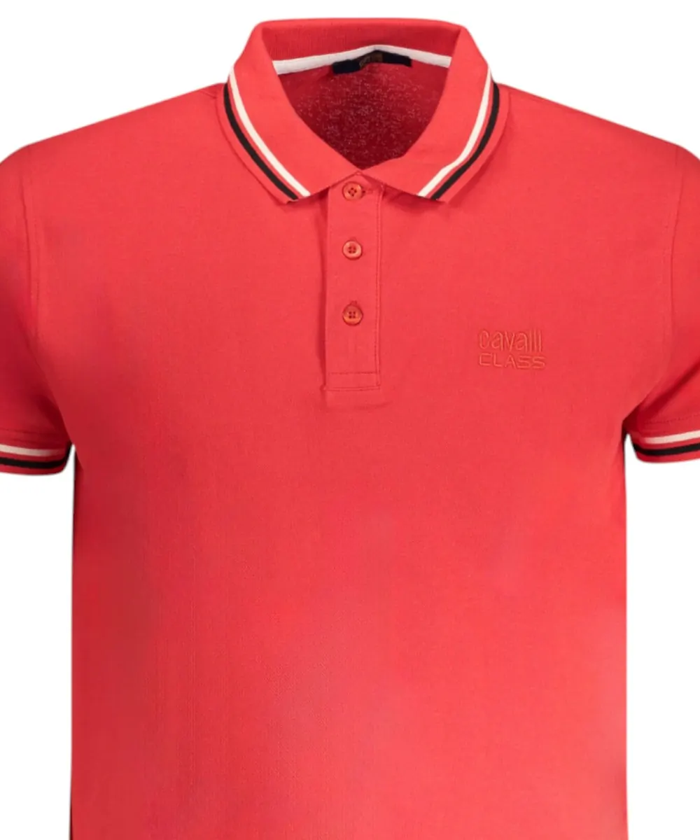 Αυτή η ανδρική μπλούζα polo από τη συλλογή Cavalli Class σε έντονο κόκκινο χρώμα προσφέρει έναν δυναμικό συνδυασμό κλασικού στυλ και πολυτελών λεπτομερειών.