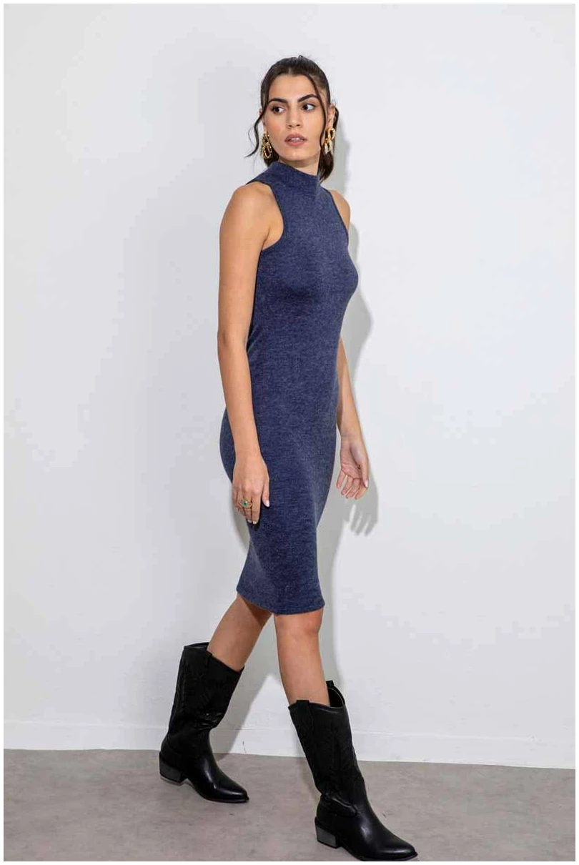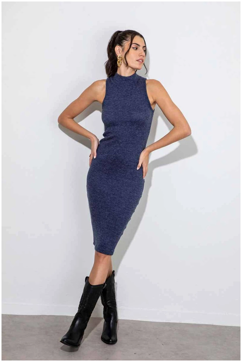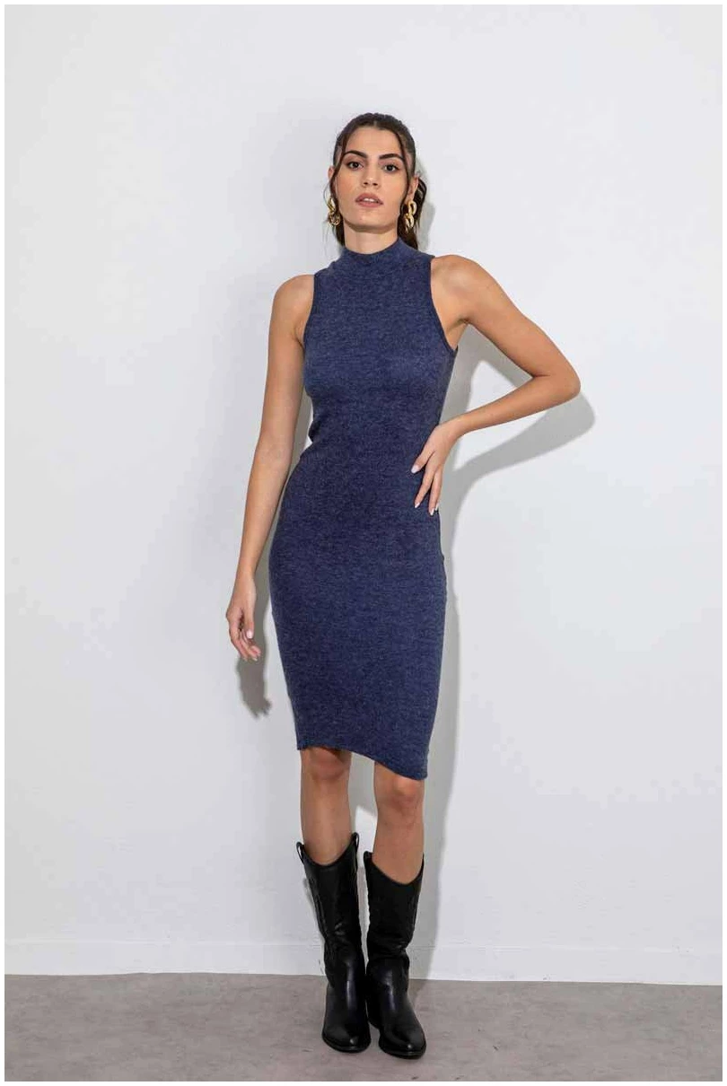 Cento – Φόρεμα midi πλεκτό αμάνικο 1103021-704 Μπλε