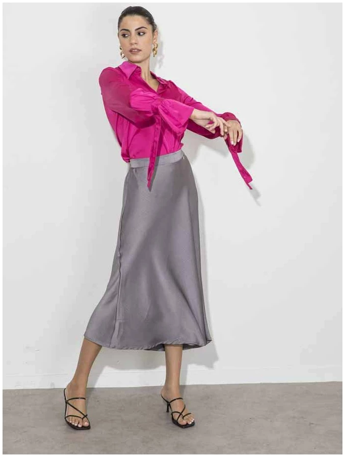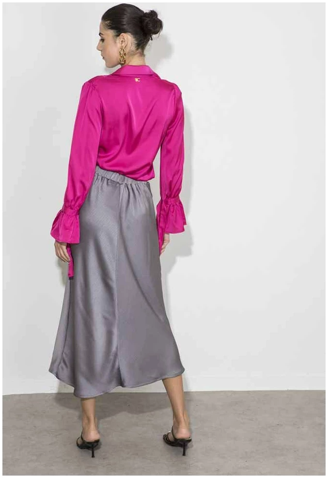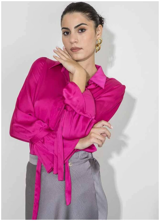 Cento – Πουκάμισο σατινέ με δέσιμο στο μανίκι 2703007-202 Φούξια