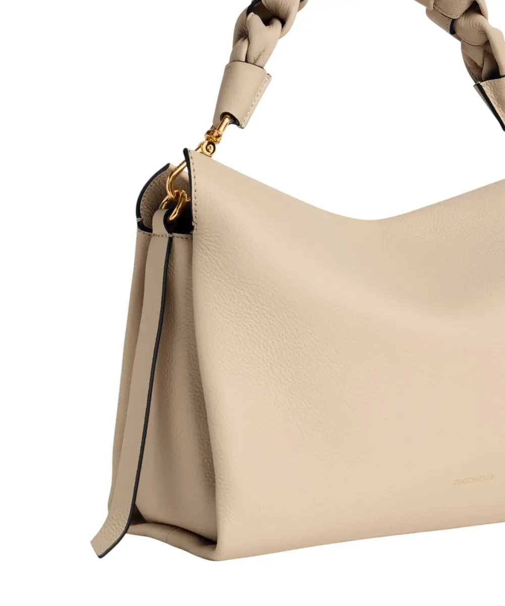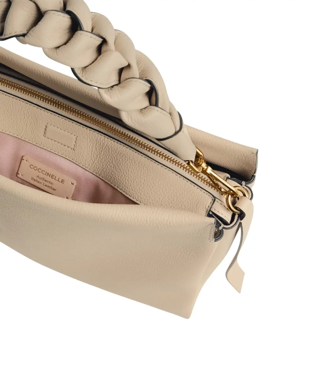 Η σειρά Boheme της Coccinelle αποτελεί την ιδανική επιλογή για τη δυναμική γυναίκα που αναζητά έναν συνδυασμό λειτουργικότητας και σύγχρονης θηλυκότητας. Κατασκευασμένη από μαλακό δέρμα διπλής όψης, ξεχωρίζει για την εμβληματική πλεκτή λαβή της που προσδίδει έναν σοφιστικέ χαρακτήρα σε κάθε εμφάνιση. Σε αυτή τη ζεστή μπεζ (700) απόχρωση, η Boheme είναι η απόλυτη “all-day” τσάντα που αποπνέει διαχρονική κομψότητα και ευελιξία.