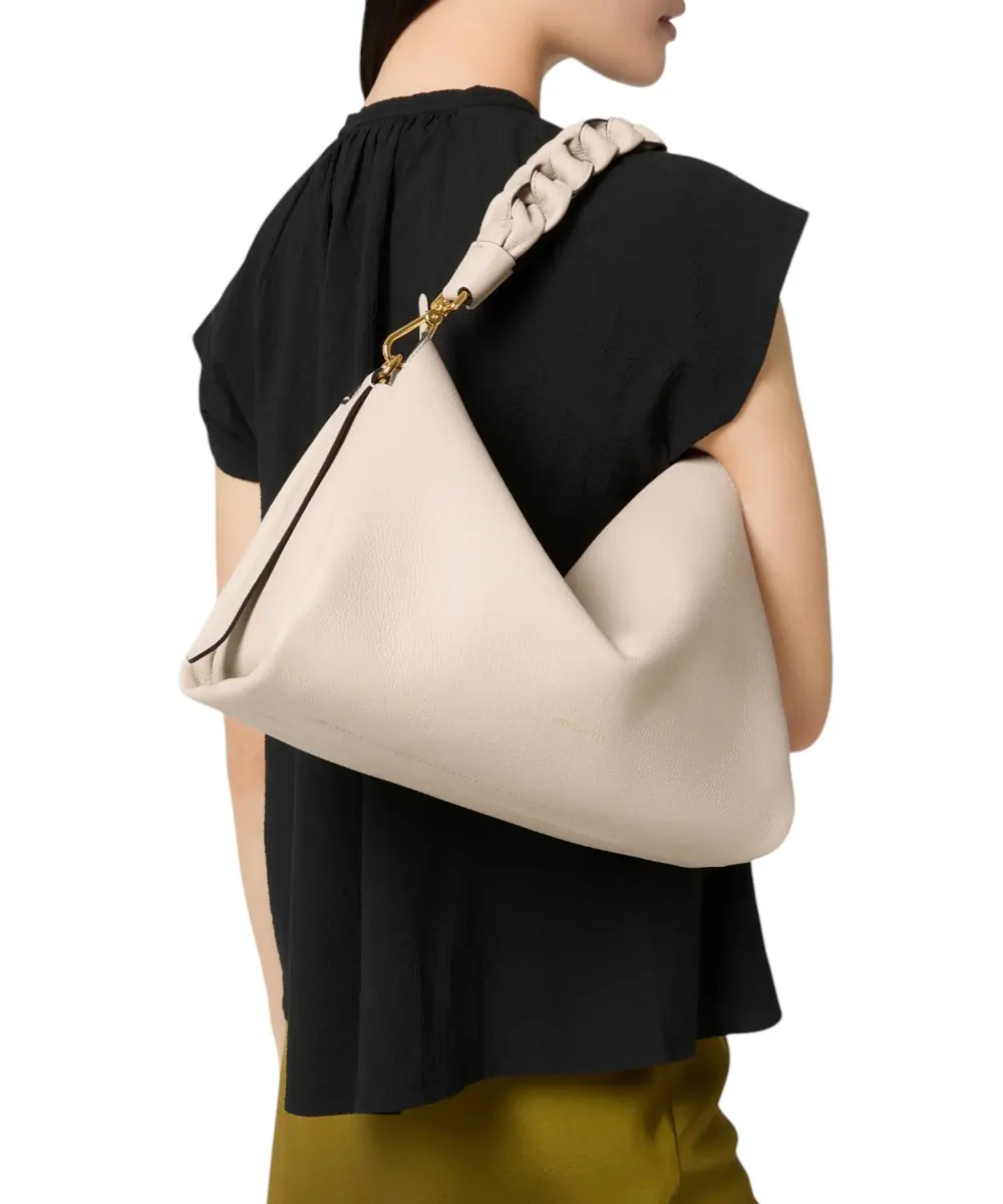 Soft & Comfort Pairing: Ταιριάζει άψογα με μια ζακέτα ή ένα φούτερ σε french terry σε αποχρώσεις γκρι μελανζέ ή off-white. Ο συνδυασμός της πλεκτής δερμάτινης λαβής με την απαλή υφή του υφάσματος προσθέτει βάθος και ενδιαφέρον στο καθημερινό σας στυλ.