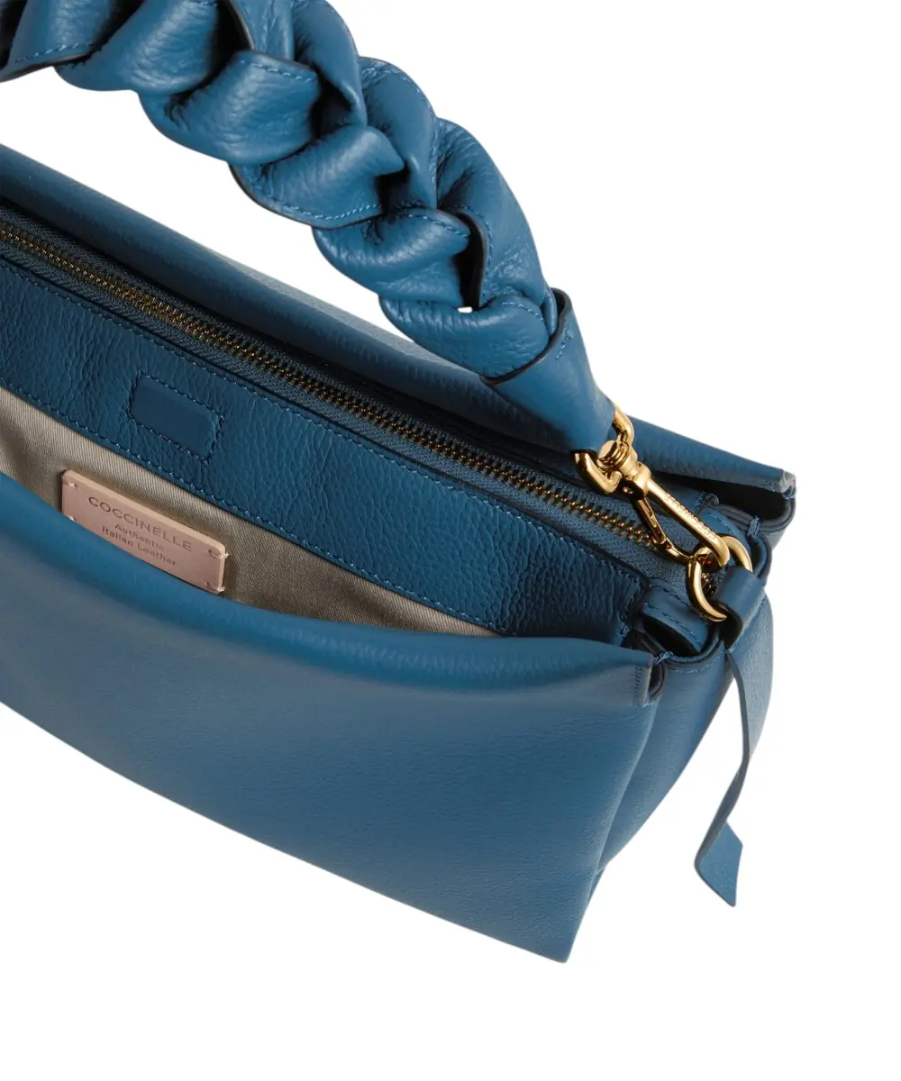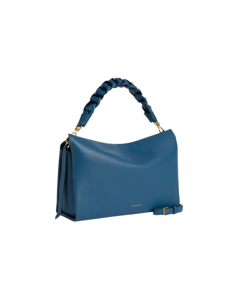 Η σειρά Boheme της Coccinelle αποτελεί την ιδανική επιλογή για τη δυναμική γυναίκα που αναζητά έναν συνδυασμό λειτουργικότητας και σύγχρονης θηλυκότητας. Κατασκευασμένη από μαλακό δέρμα διπλής όψης, ξεχωρίζει για την εμβληματική πλεκτή λαβή της που προσδίδει έναν σοφιστικέ χαρακτήρα σε κάθε εμφάνιση. Σε αυτή την υπέροχη Aqua / Light Blue (719) απόχρωση, η Boheme είναι η απόλυτη “all-day” τσάντα που φέρνει έναν αέρα φρεσκάδας και ανοιξιάτικης ηρεμίας στο στυλ σας.