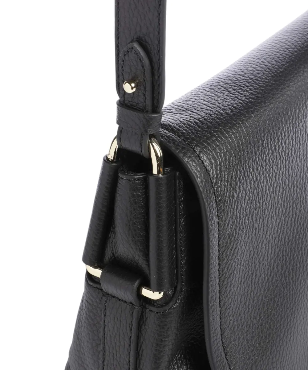 Styling Tip: Επιλέξτε κοσμήματα σε χρυσούς ή ασημένιους τόνους, καθώς το μαύρο δέρμα αποτελεί τον τέλειο καμβά για κάθε μεταλλική λεπτομέρεια. Λόγω του ρυθμιζόμενου ιμάντα, μπορείτε να τη φοράτε ως τσάντα ώμου για πιο “συγκροτημένο” στυλ ή χιαστί (crossbody) για μια πιο χαλαρή και άνετη αίσθηση κατά τη διάρκεια της ημέρας.