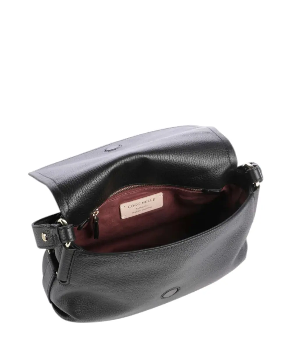 Η σειρά Rebekka της Coccinelle αποτελεί μια σύγχρονη και δυναμική πρόταση, συνδυάζοντας την κλασική ιταλική δεξιοτεχνία με μοντέρνες σχεδιαστικές λεπτομέρειες. Σε αυτή τη διαχρονική μαύρη (NE001) απόχρωση, η τσάντα αναβαθμίζεται μέσα από το ιδιαίτερο τύπωμα (print) και το λογότυπο, προσφέροντας έναν αέρα σοφιστικέ πολυτέλειας που παραμένει επίκαιρος κάθε εποχή.