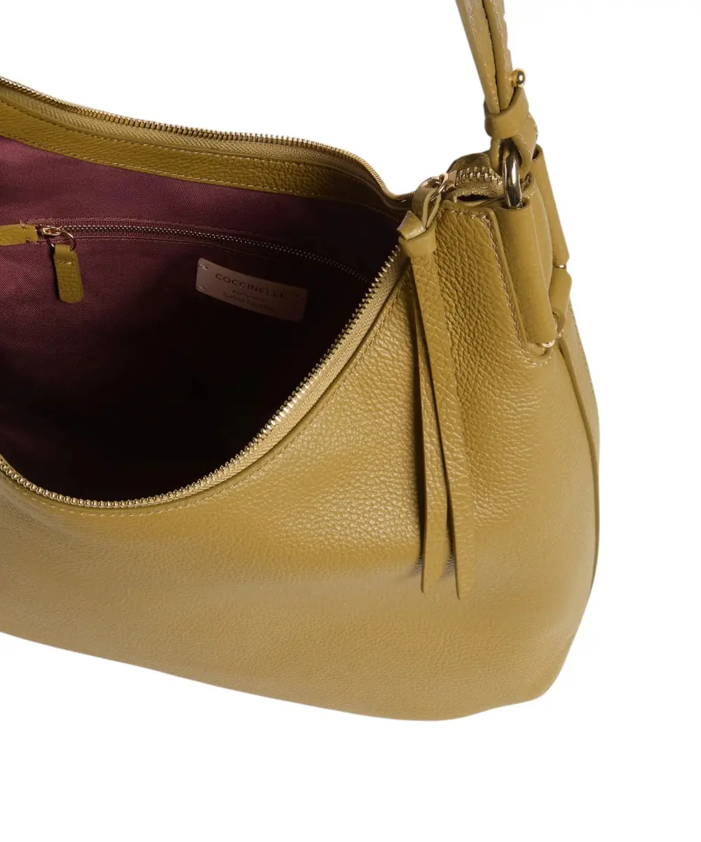 Η σειρά Rebekka Medium της Coccinelle επιτυγχάνει την απόλυτη ισορροπία μεταξύ εκλεπτυσμένης αισθητικής και καθημερινής λειτουργικότητας. Με τη χαρακτηριστική στρογγυλεμένη σιλουέτα της και την ανάλαφρη κατασκευή της, η Rebekka αναδεικνύει την απαλότητα του υλικού, ενώ η oversized πλευρική πένα (plectrum) προσδίδει μια μοναδική σχεδιαστική ταυτότητα. Σε αυτή την απαλή πράσινη (G43) απόχρωση, η τσάντα αποτελεί μια φρέσκια και σύγχρονη επιλογή που εναρμονίζεται απόλυτα με την ανοιξιάτικη παλέτα.