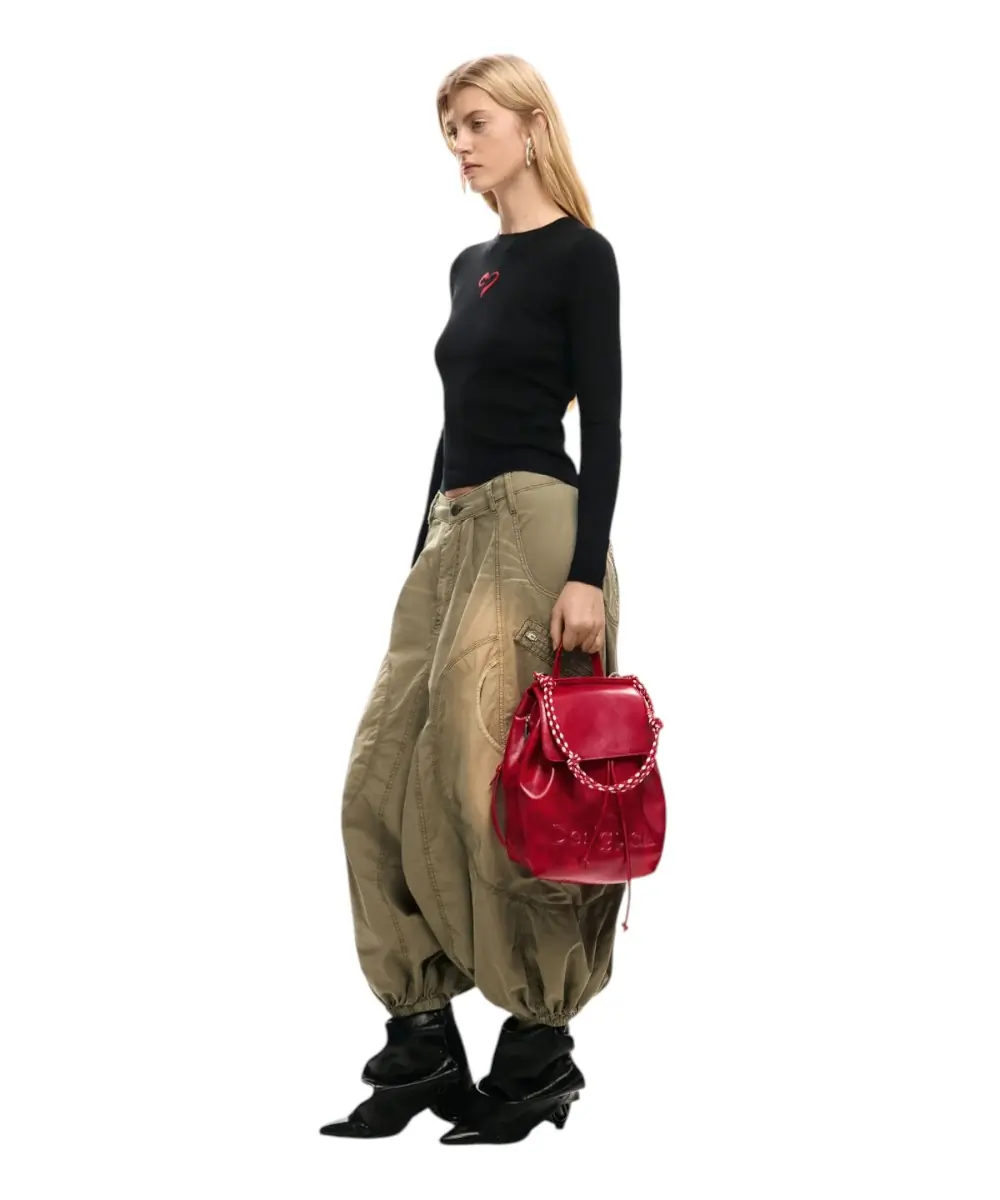 Το Half Logo Luena Mini σε κόκκινο χρώμα είναι ιδανικό για να προσθέσετε ένταση σε ένα casual chic σύνολο. Ταιριάζει εξαιρετικά με ένα denim παντελόνι και ένα top σε λευκό ή μαύρο χρώμα, δημιουργώντας μια εντυπωσιακή αντίθεση. Για μια πιο χαλαρή εμφάνιση, συνδυάστε το με ένα σετ σε french terry, χρησιμοποιώντας το αποσπώμενο μανίκι για να το κρατήσετε στον ώμο ως τσάντα πόλης.
