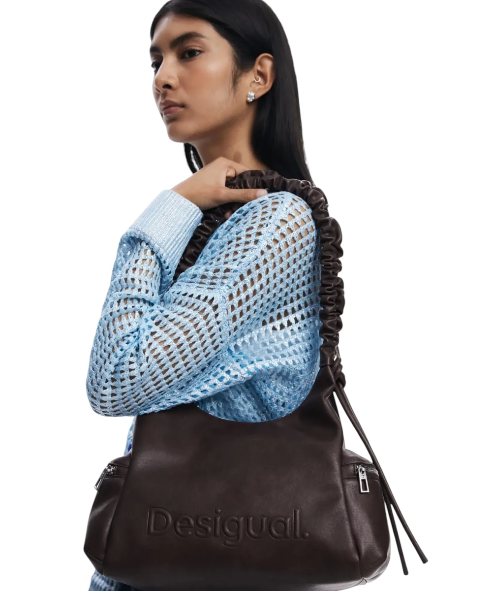 Desigual – Γυναικεία Τσάντα Ώμου Half Logo Montville 25WAXPAY-6009 Καφέ