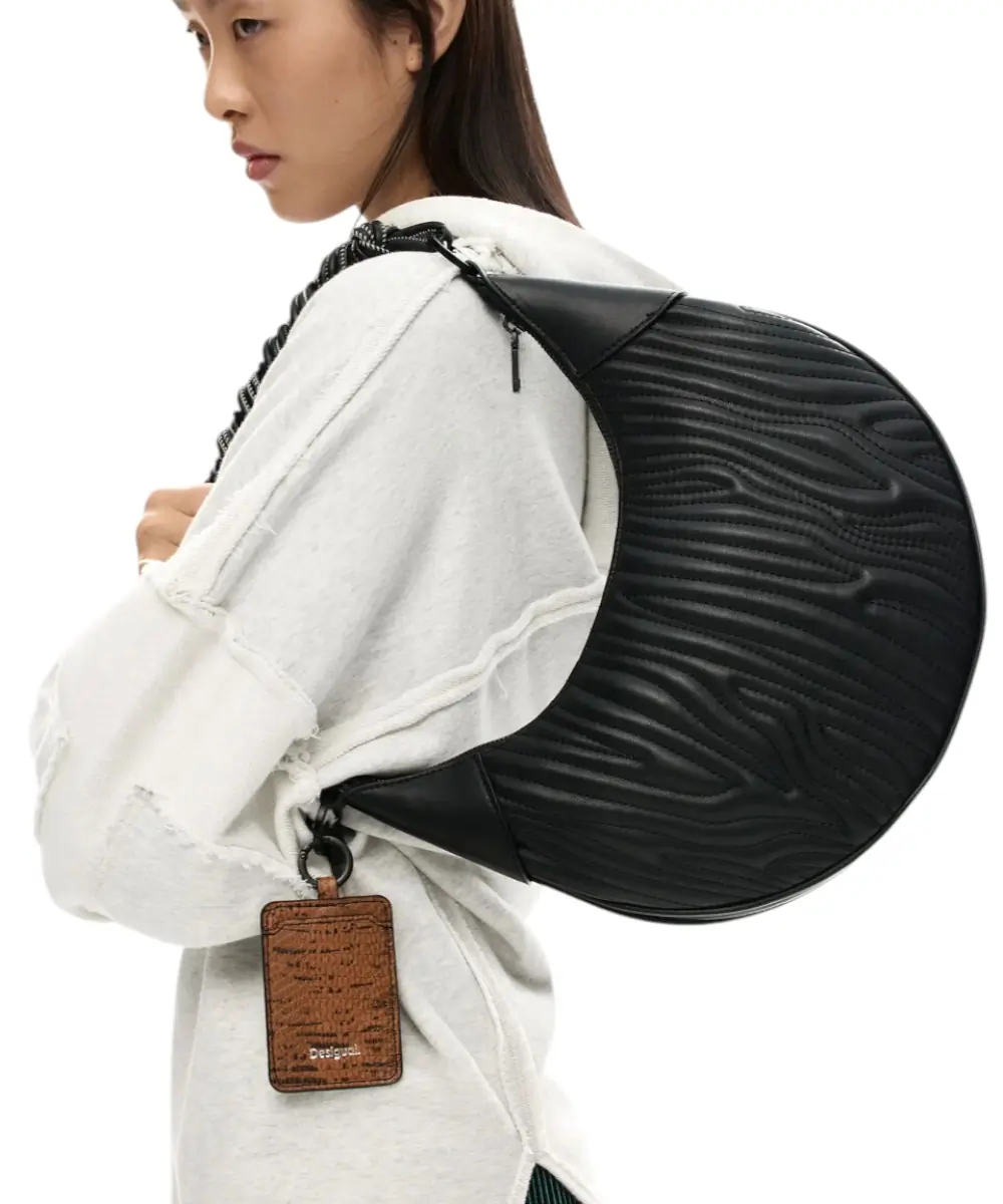 Η τσάντα Helium Calgary επαναπροσδιορίζει το καθημερινό στυλ με το μοναδικό οβάλ σχήμα της και τις ανάγλυφες λεπτομέρειες. Σχεδιασμένη στη Βαρκελώνη για τη σεζόν SS26, αποτελεί ένα statement κομμάτι που συνδυάζει την κομψότητα του leather-effect με έξυπνα αξεσουάρ οργάνωσης.