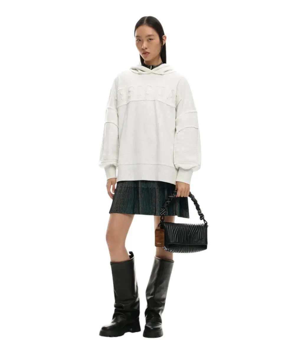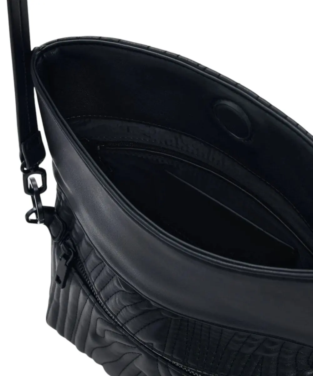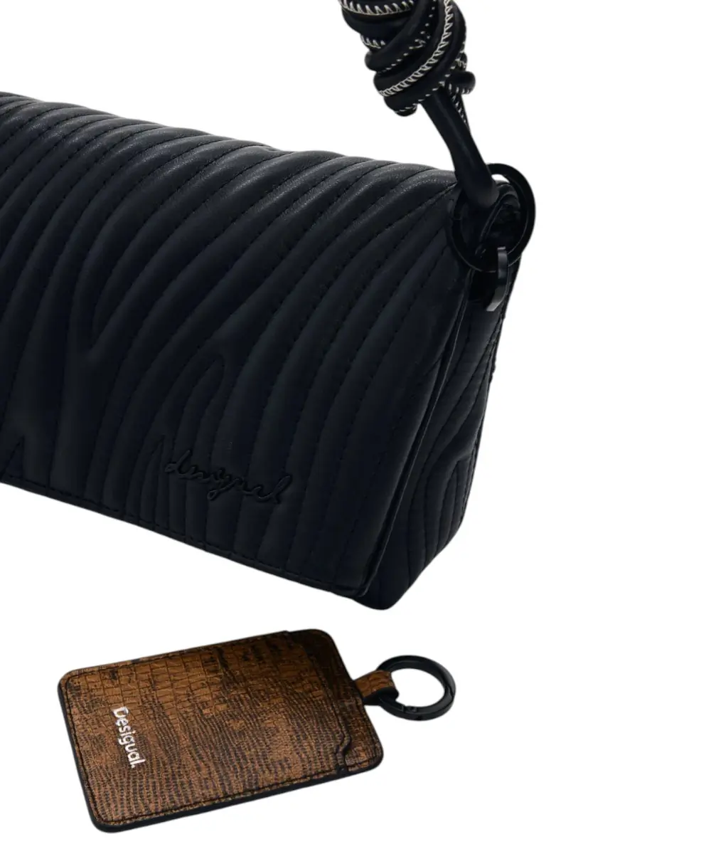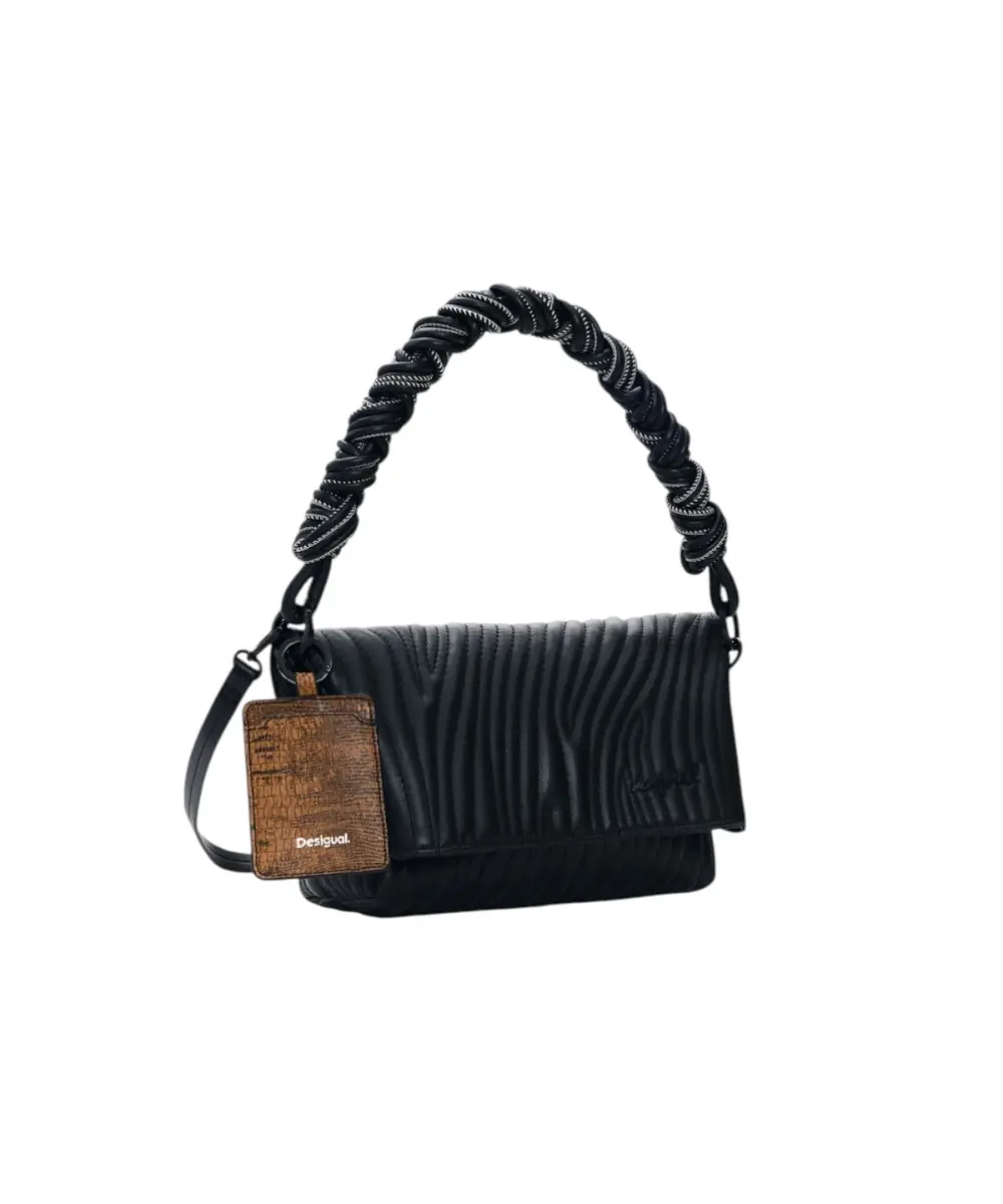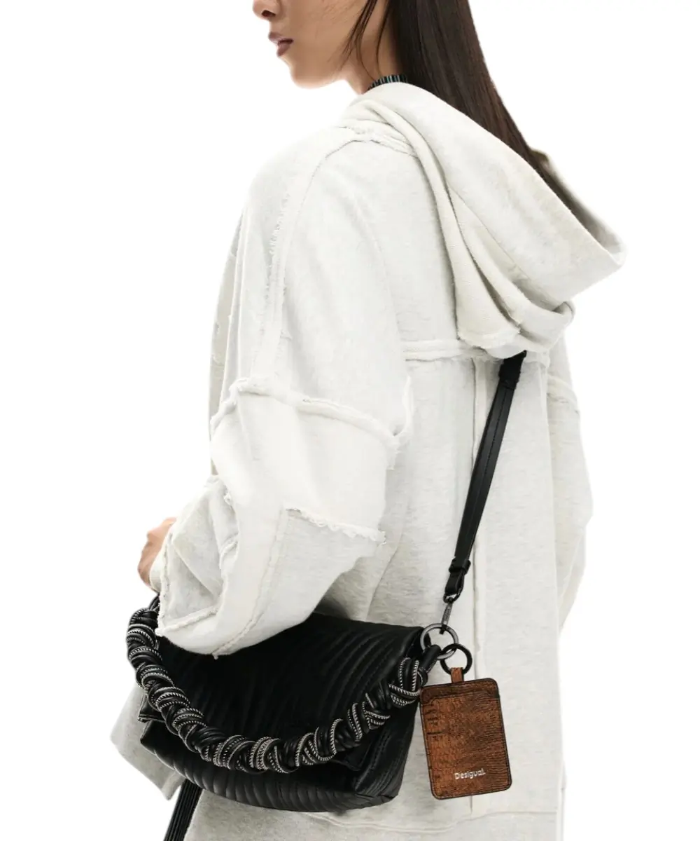 Contrast & Design: Οι λεπτομέρειες σε αντίθεση (contrast details) και το ανάγλυφο λογότυπο της Desigual προσθέτουν μια σύγχρονη πινελιά πάνω στη “smooth” επιφάνεια της τσάντας.