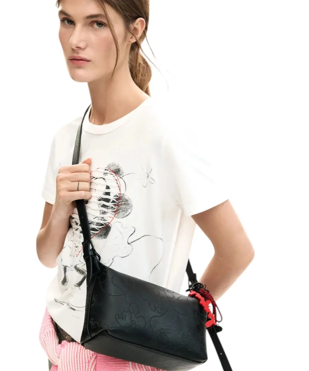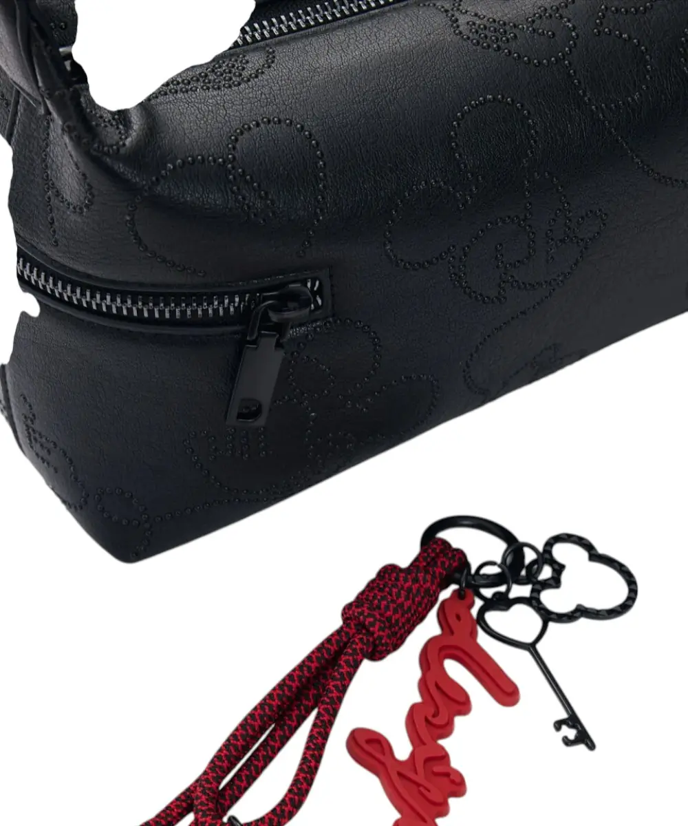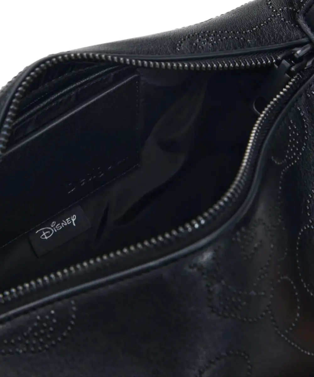 Mickey Mouse™ Metallic Appliqués: Το σώμα της τσάντας κοσμείται από μεταλλικές εφαρμογές με τη σιλουέτα του Mickey Mouse, προσφέροντας μια μοναδική λάμψη πάνω στο μαύρο leather-effect υλικό.