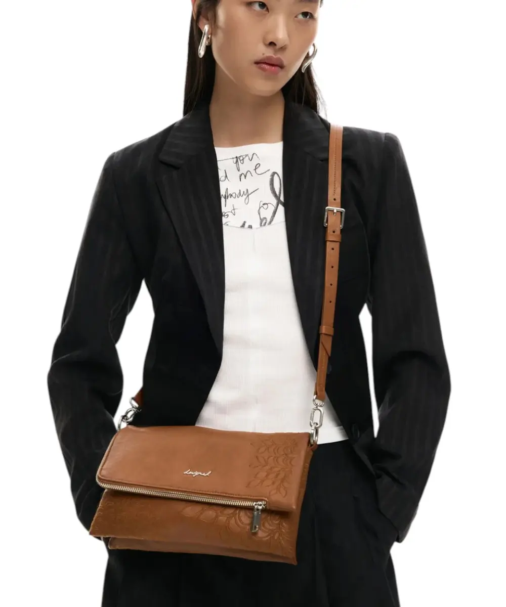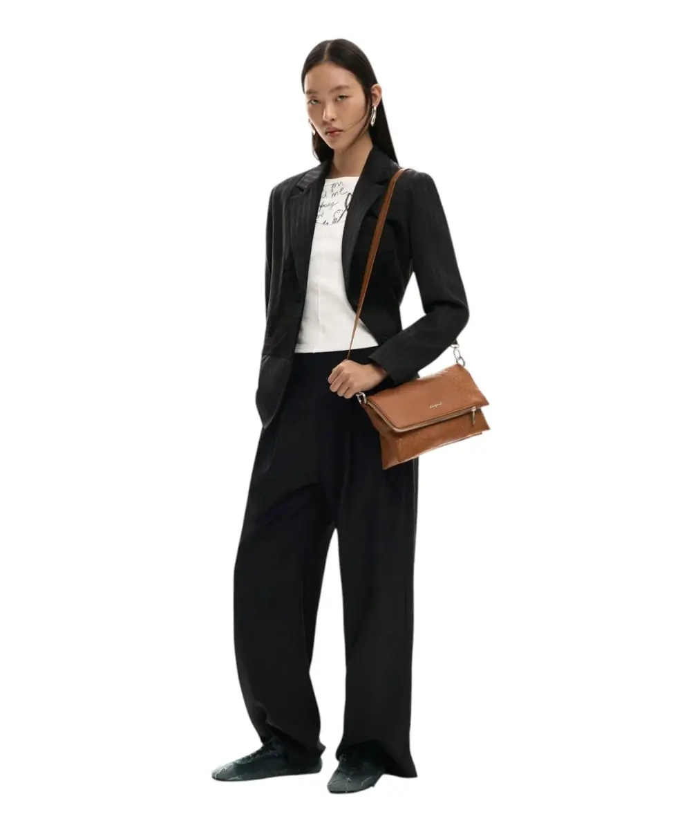 Elegant Details: Οι λεπτομέρειες σε αντίθεση (contrast details) και το λογότυπο της Desigual προσθέτουν μια μοντέρνα πινελιά στην κομψή αισθητική της.