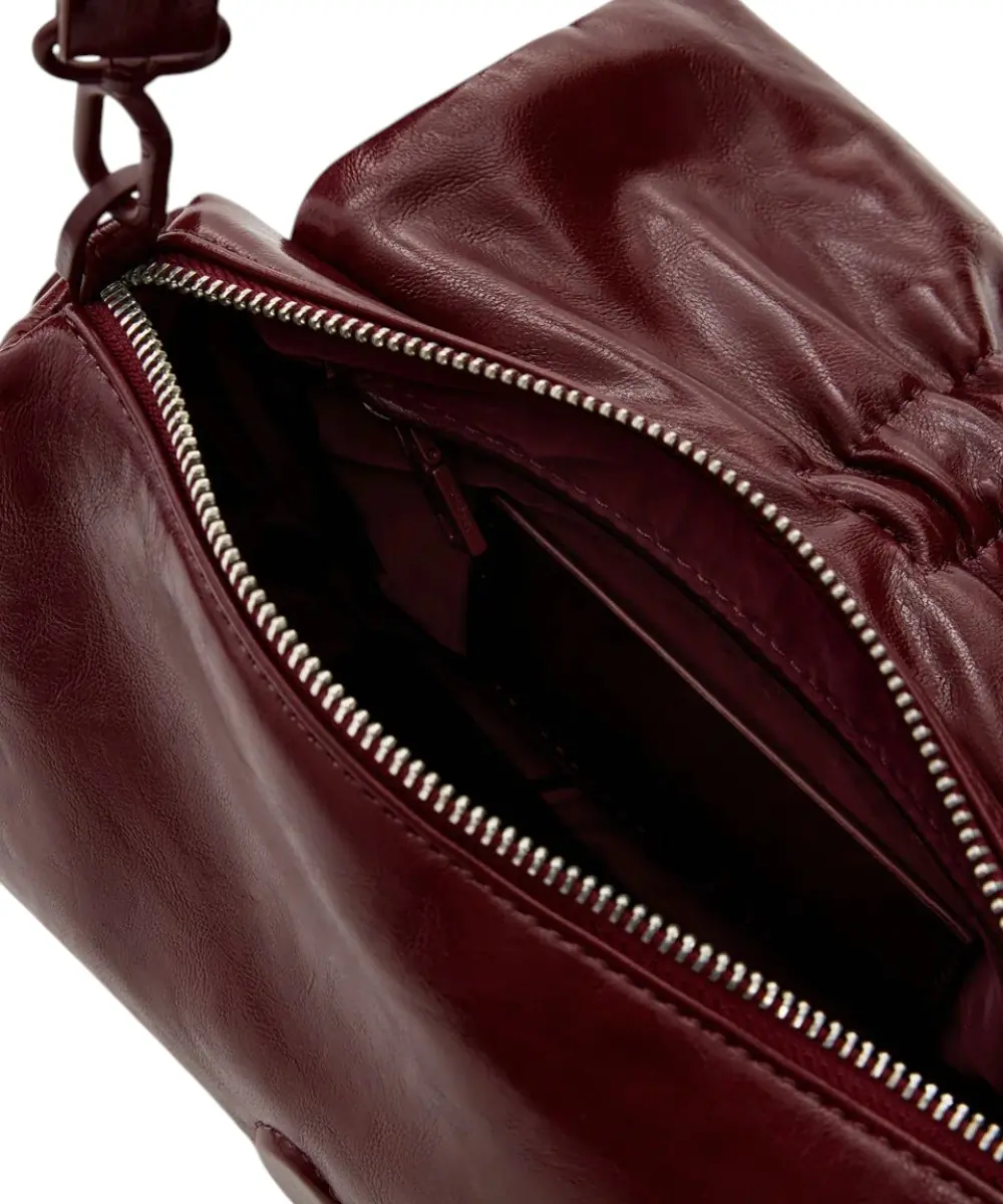 Λόγω της γυαλιστερής της υφής και του έντονου βουργουνδί χρώματος, η Rodio Naron Mini Flap είναι ιδανική για να αναβαθμίσει ένα casual look. Συνδυάστε τη με jean παντελόνι και ένα απλό λευκό t-shirt ή ένα λευκό πουκάμισο. Το γυαλιστερό φινίρισμα ταιριάζει υπέροχα με sneakers που έχουν μεταλλικές λεπτομέρειες ή με chunky loafers.