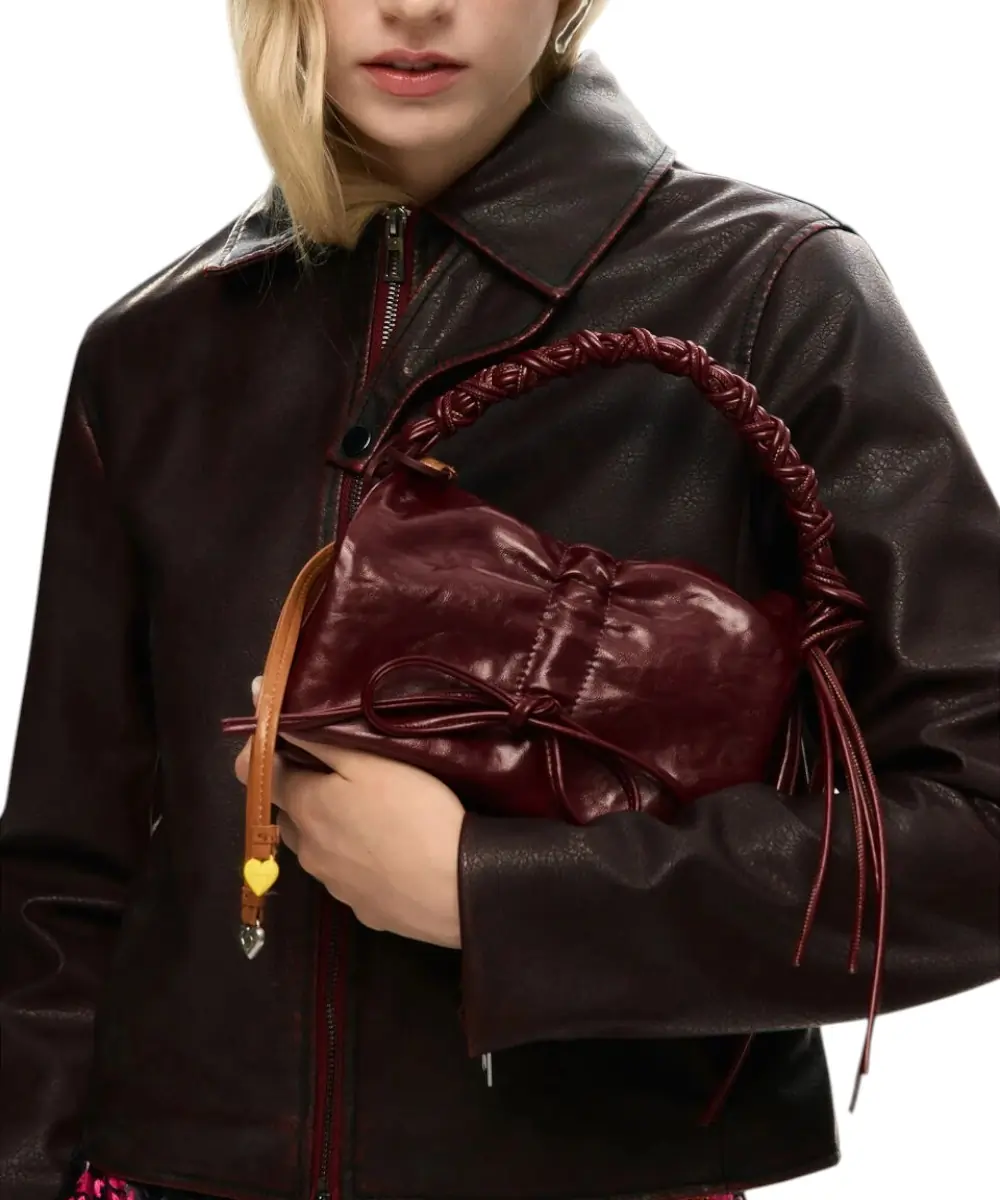 Shiny Finish & Details: Κατασκευασμένη από ανακυκλωμένο PU, διαθέτει γυαλιστερή υφή που τραβάει τα βλέμματα, διακοσμητικό φιόγκο (decorative bow), σούρες (gathers) και αποσπώμενα charms.