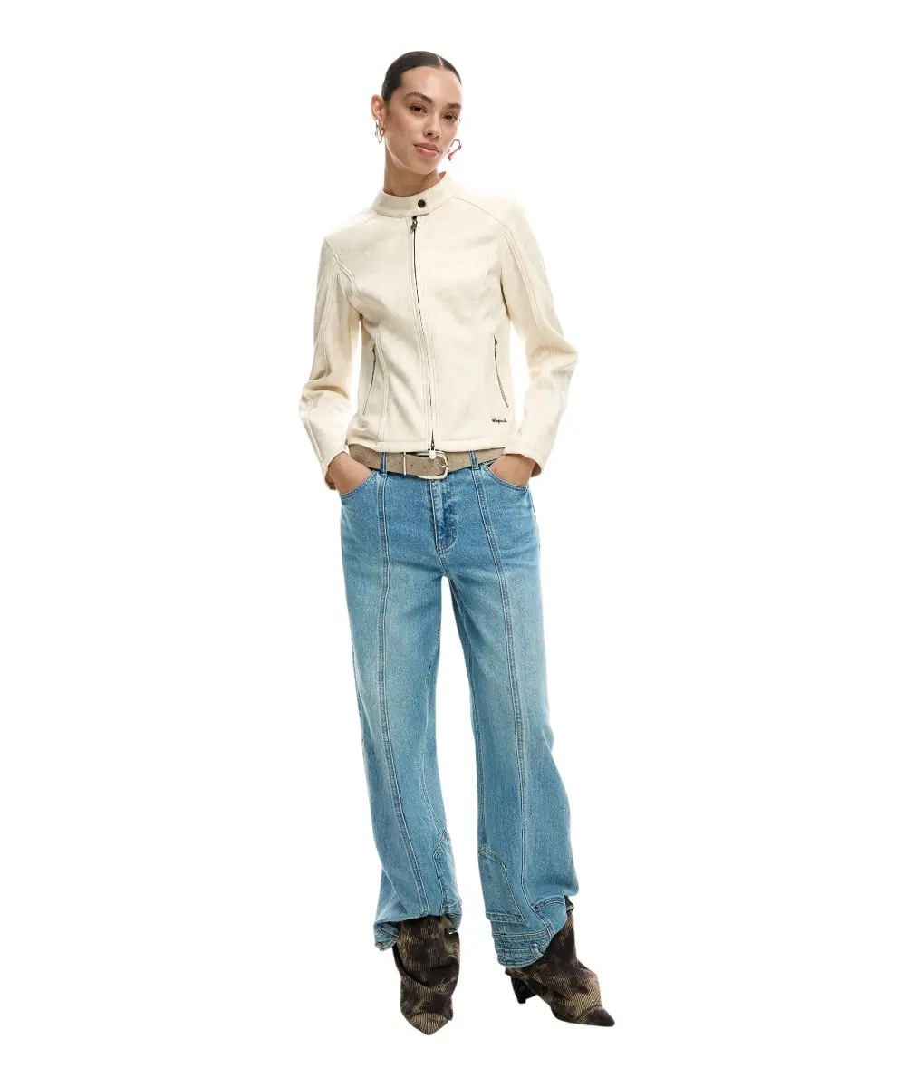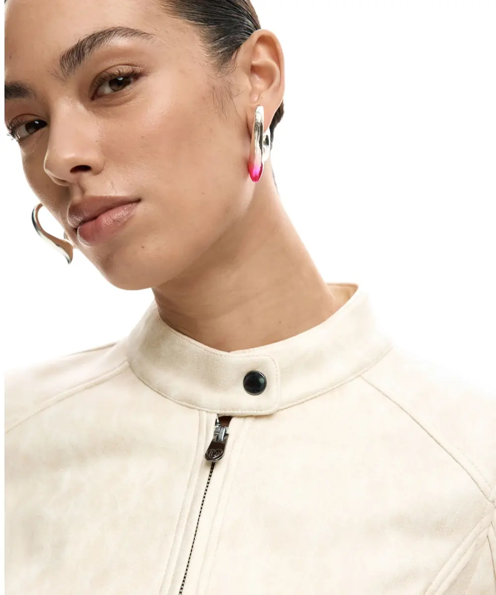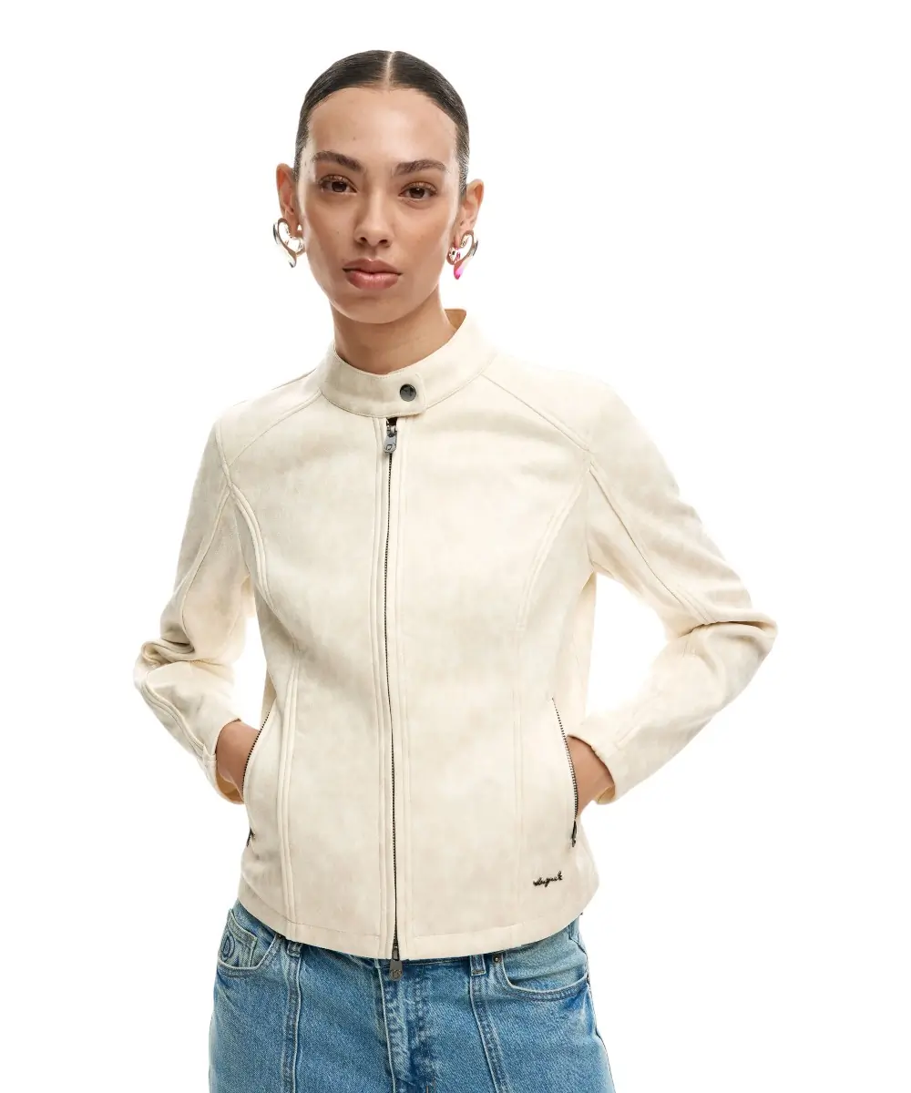 Δώστε έναν αέρα “cool” αυτοπεποίθησης στις εμφανίσεις σας με αυτό το faux leather jacket της Desigual. Με το ιδιαίτερο worn-effect (εφέ παλαιωμένου δέρματος) και τον μοντέρνο Mandarin γιακά, αυτό το κομμάτι αποτελεί μια must-have επιλογή για τη σεζόν Άνοιξη/Καλοκαίρι 2026, ιδανικό για όσους αναζητούν ένα ρούχο με χαρακτήρα και άψογη εφαρμογή.