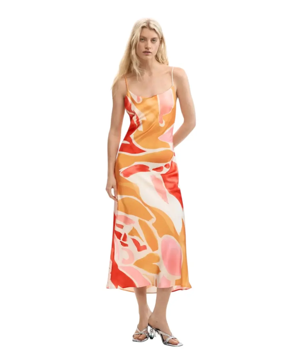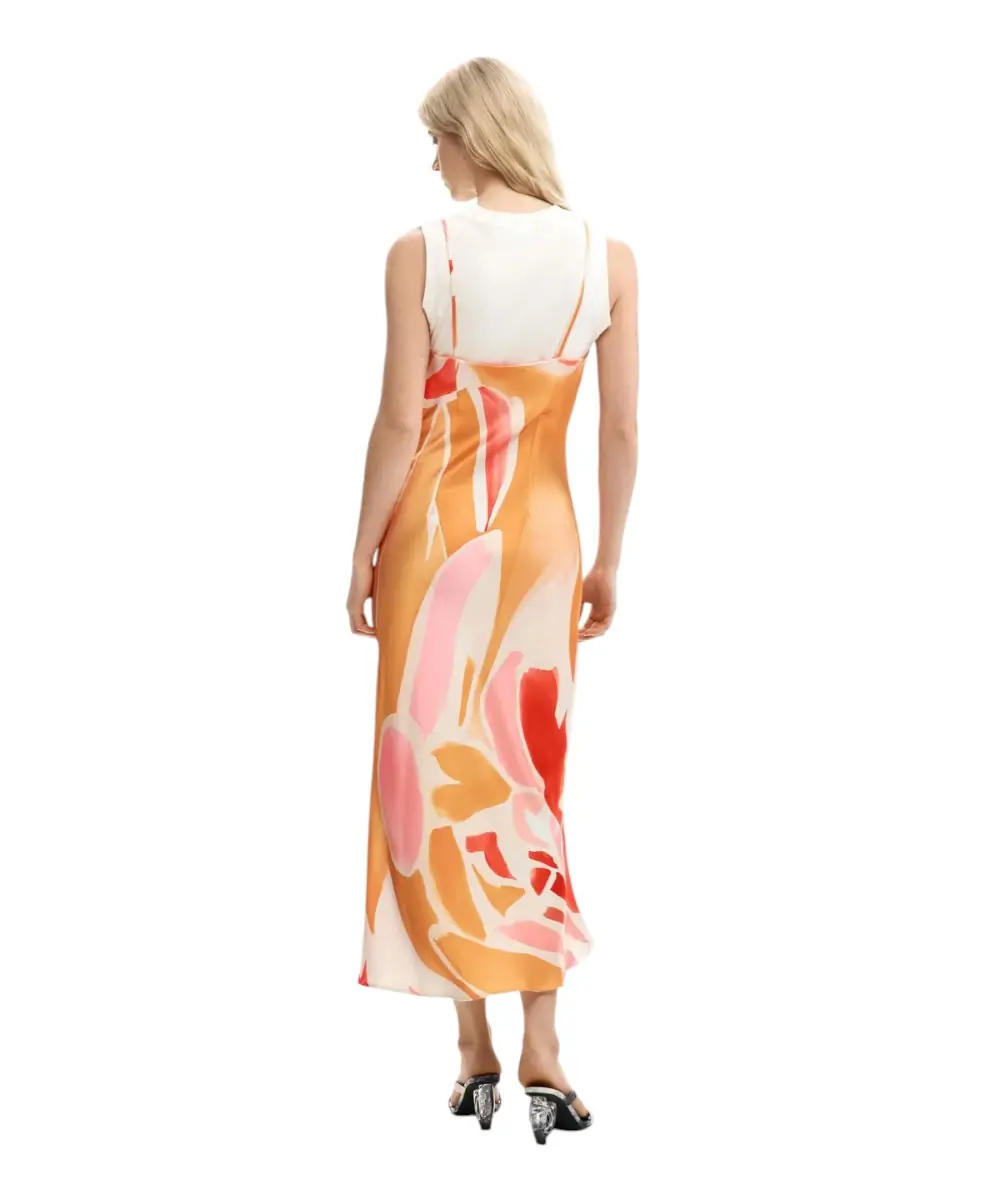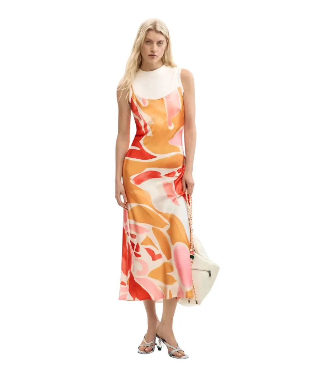 Το γυναικείο φόρεμα Wave της Desigual από τη συλλογή SS26 αποτελεί μια ευέλικτη και άκρως καλοκαιρινή πρόταση, σχεδιασμένη στη Βαρκελώνη. Πρόκειται για ένα έξυπνο σύνολο δύο τεμαχίων που αποτελείται από ένα αέρινο maxi φόρεμα με floral print και μια αποσπώμενη αμάνικη μπλούζα, προσφέροντας πολλαπλές επιλογές εμφάνισης με ένα μόνο κομμάτι.