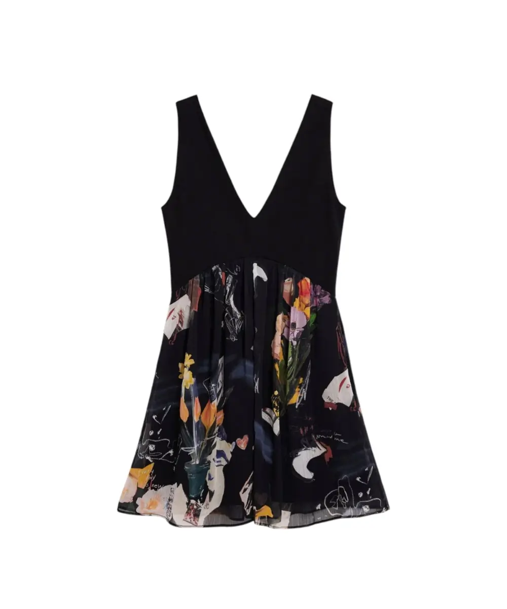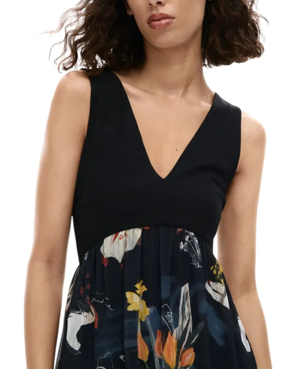 Urban Summer: Η μαύρη βάση με το πολύχρωμο τύπωμα αναδεικνύεται μοναδικά με μαύρα πέδιλα ή πλατφόρμες. Είναι η ιδανική επιλογή για μια απογευματινή βόλτα ή ένα cocktail party.