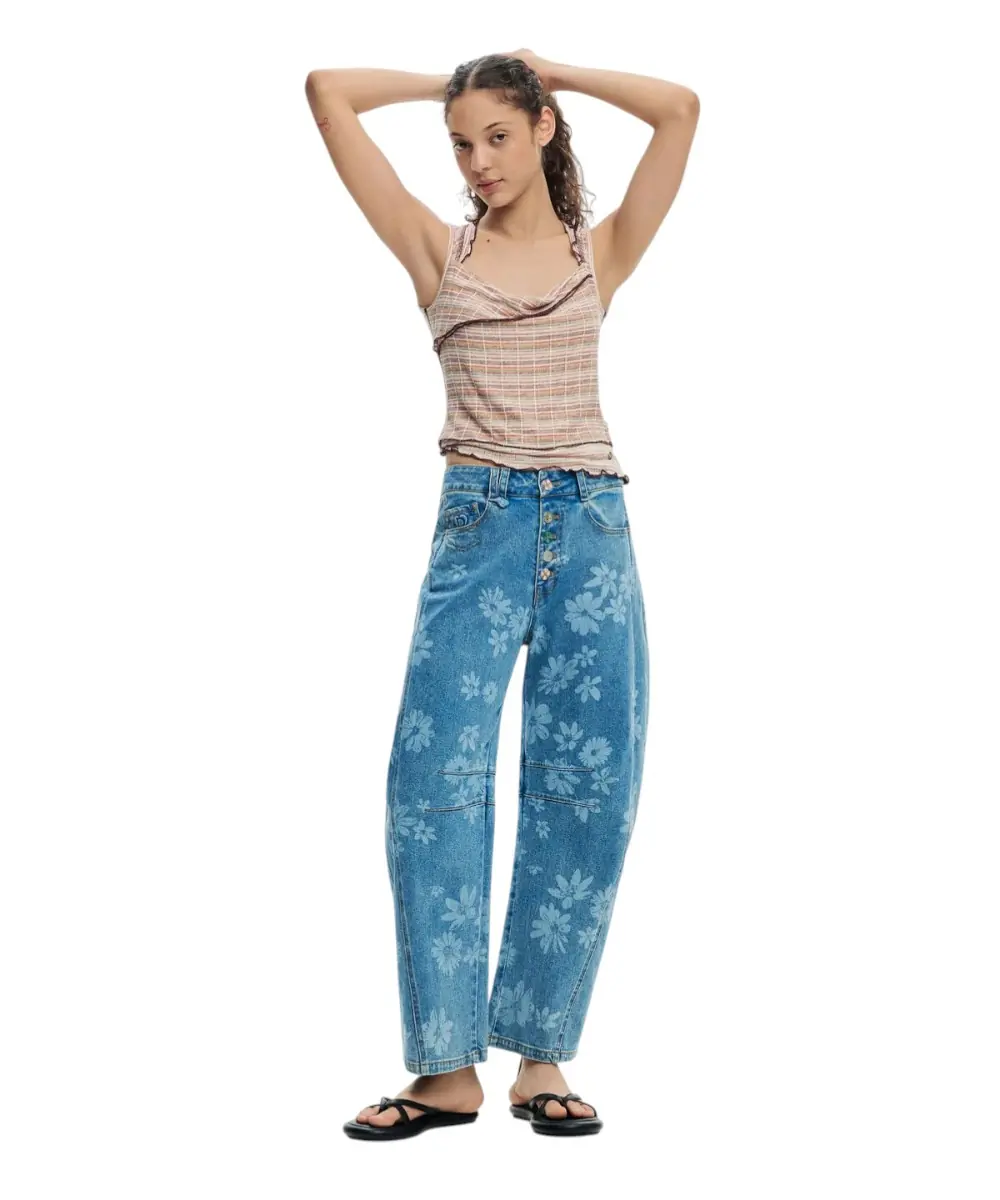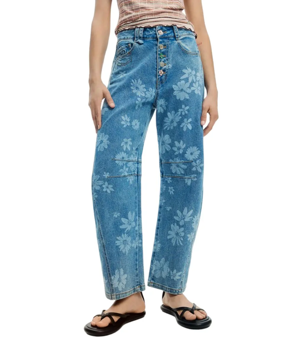 Τα γυναικεία τζιν παντελόνια Maggi της Desigual αποτελούν μια τολμηρή και καλλιτεχνική προσέγγιση στο κλασικό denim. Με τη χαρακτηριστική balloon γραμμή τους και το εντυπωσιακό floral print σε διάφορες αποχρώσεις του μπλε, αυτά τα παντελόνια συνδυάζουν την άνεση της 100% βαμβακερής σύνθεσης με τη μοναδική σχεδιαστική υπογραφή του brand για τη συλλογή της άνοιξης.