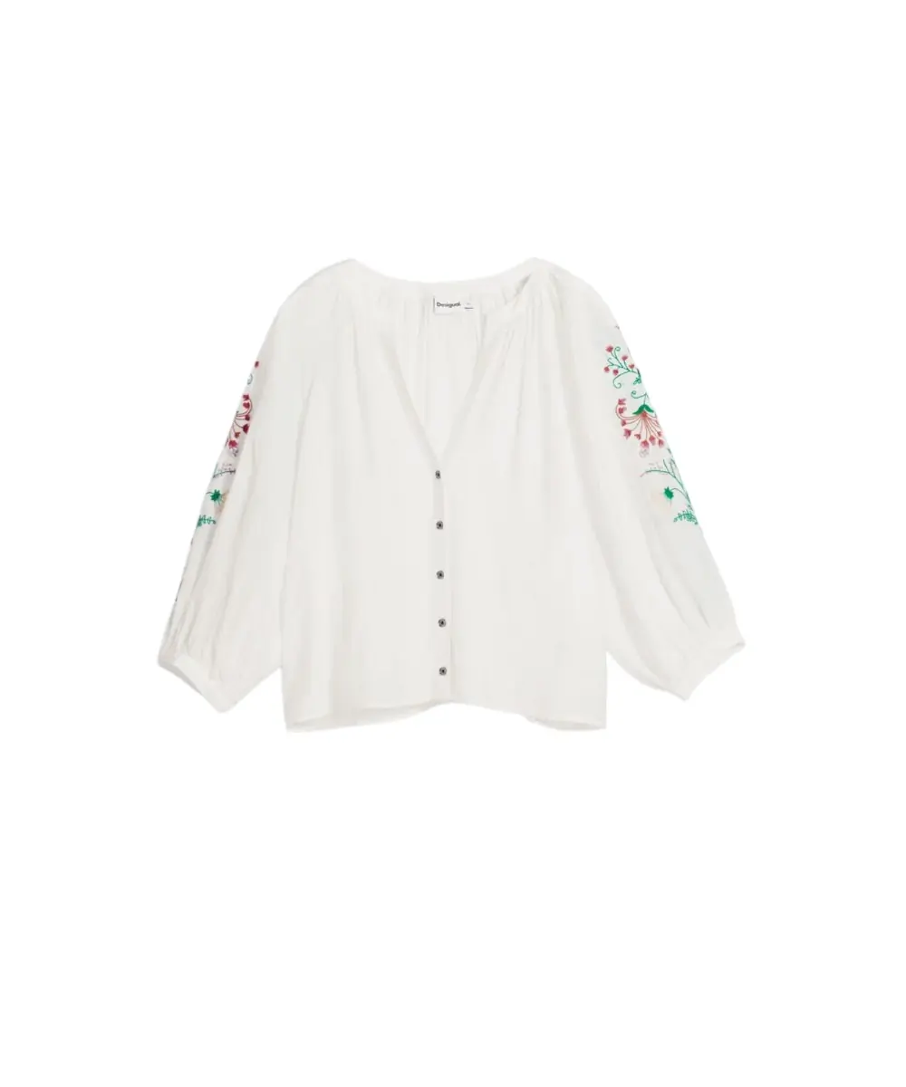 Η γυναικεία μπλούζα Blus Roman της Desigual αποτελεί την επιτομή της ανοιξιάτικης κομψότητας, συνδυάζοντας την ανάλαφρη υφή με την παραδοσιακή τέχνη του κεντήματος. Κατασκευασμένη από ένα δροσερό μείγμα βισκόζης, αυτή η μπλούζα ξεχωρίζει για τα περίτεχνα floral κεντήματα στα μανίκια, προσφέροντας ένα ρομαντικό και εκλεπτυσμένο στυλ που αναπνέει.