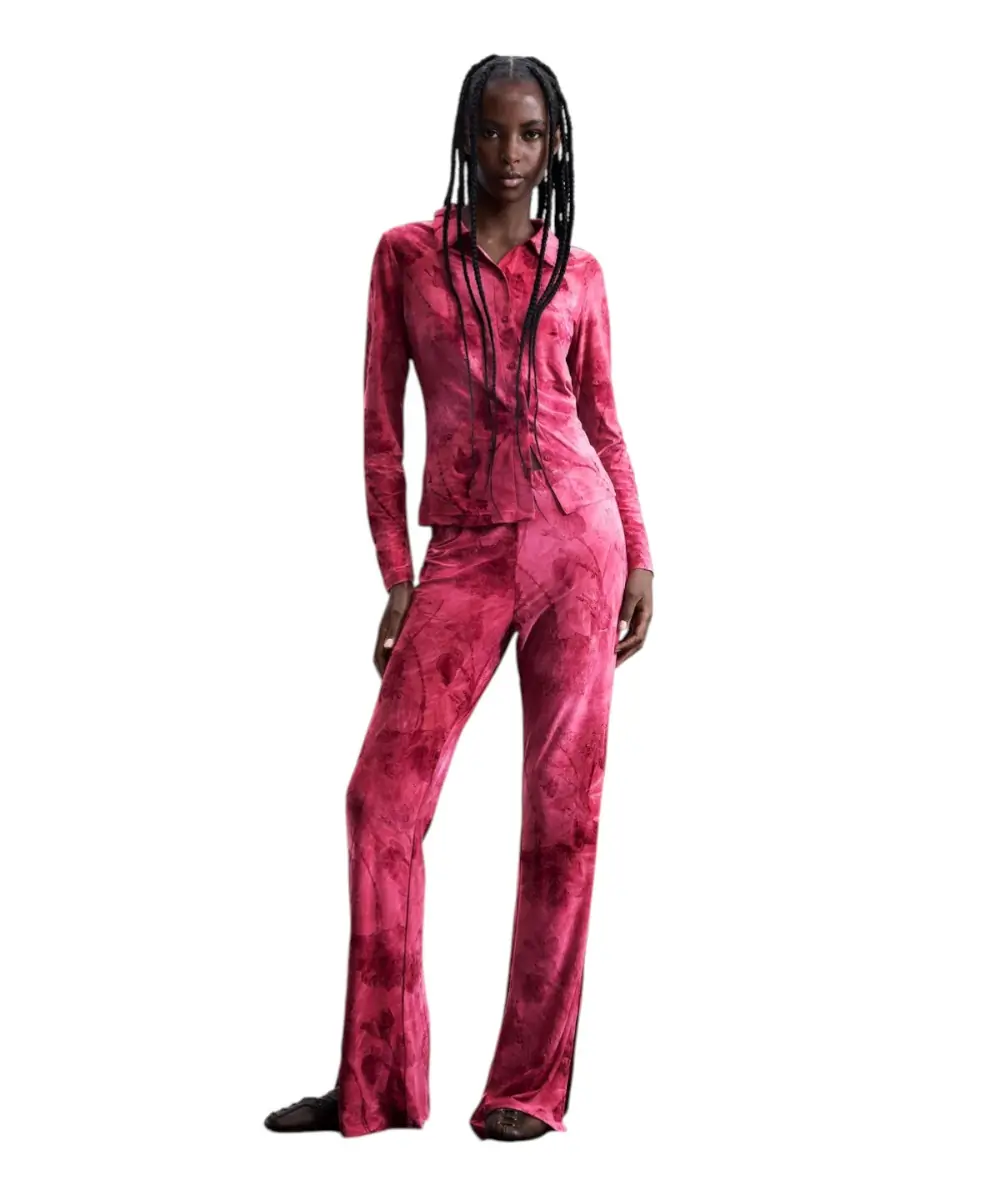 Το πουκάμισο Londres από τη συλλογή Άνοιξη/Καλοκαίρι 2026 είναι ένα κομμάτι με έντονο καλλιτεχνικό χαρακτήρα. Σε κόκκινη (RO3024) βάση, συνδυάζει την πολυτέλεια του oriental μοτίβου με την ιδιαίτερη burnout υφή, δημιουργώντας ένα παιχνίδι διαφανειών και ανάγλυφων στοιχείων.