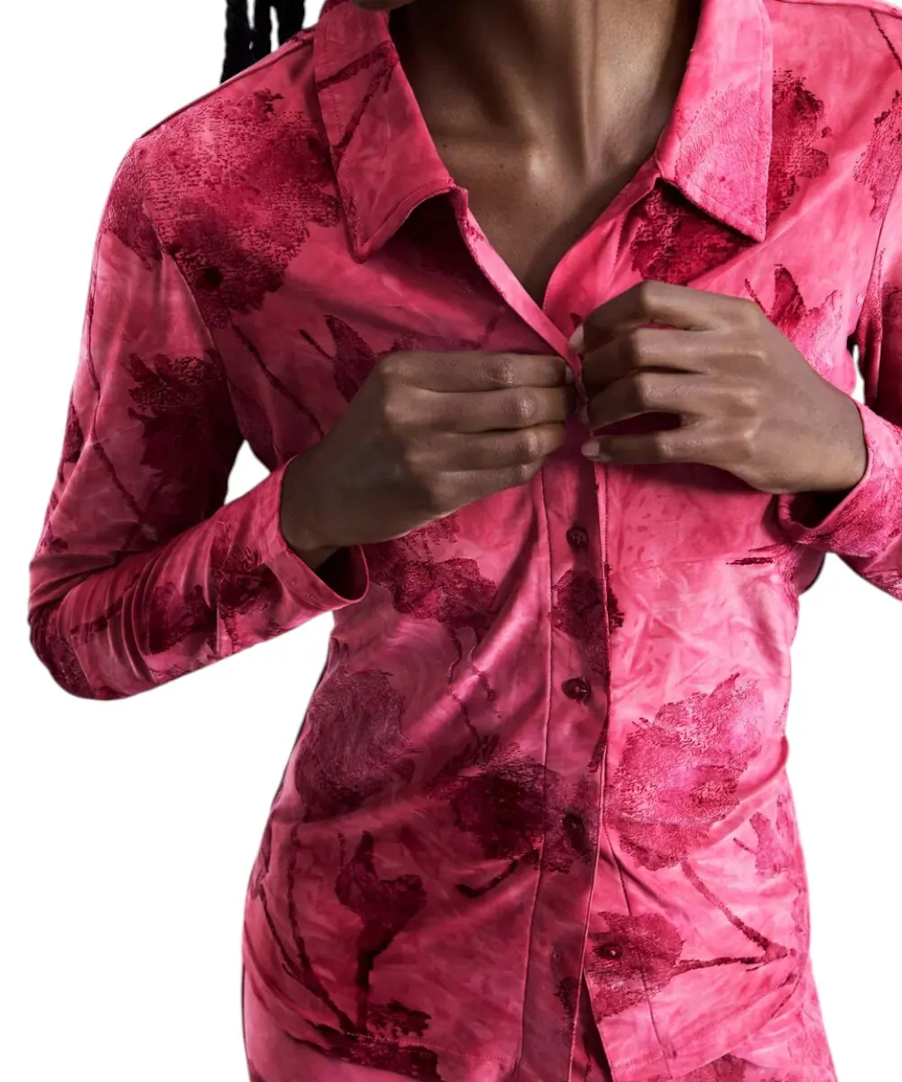 Styling Tip: Λόγω της burnout υφής και του γιακά, μπορείτε να το αναδείξετε με ένα ζευγάρι εντυπωσιακά σκουλαρίκια. Ένα τζιν παντελόνι σε μπλε σκούρο θα “ησυχάσει” το έντονο κόκκινο, κάνοντας το πουκάμισο τον απόλυτο πρωταγωνιστή του συνόλου.