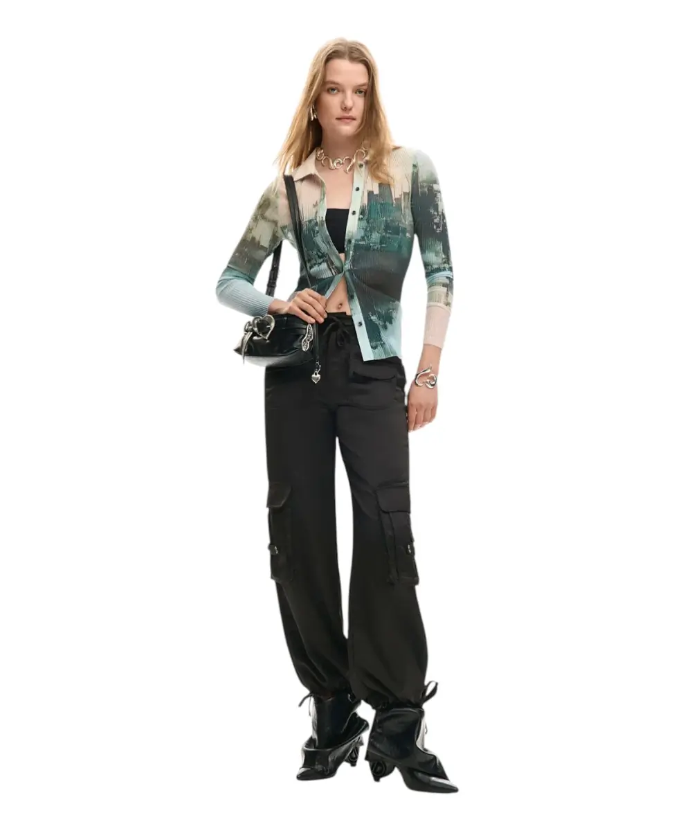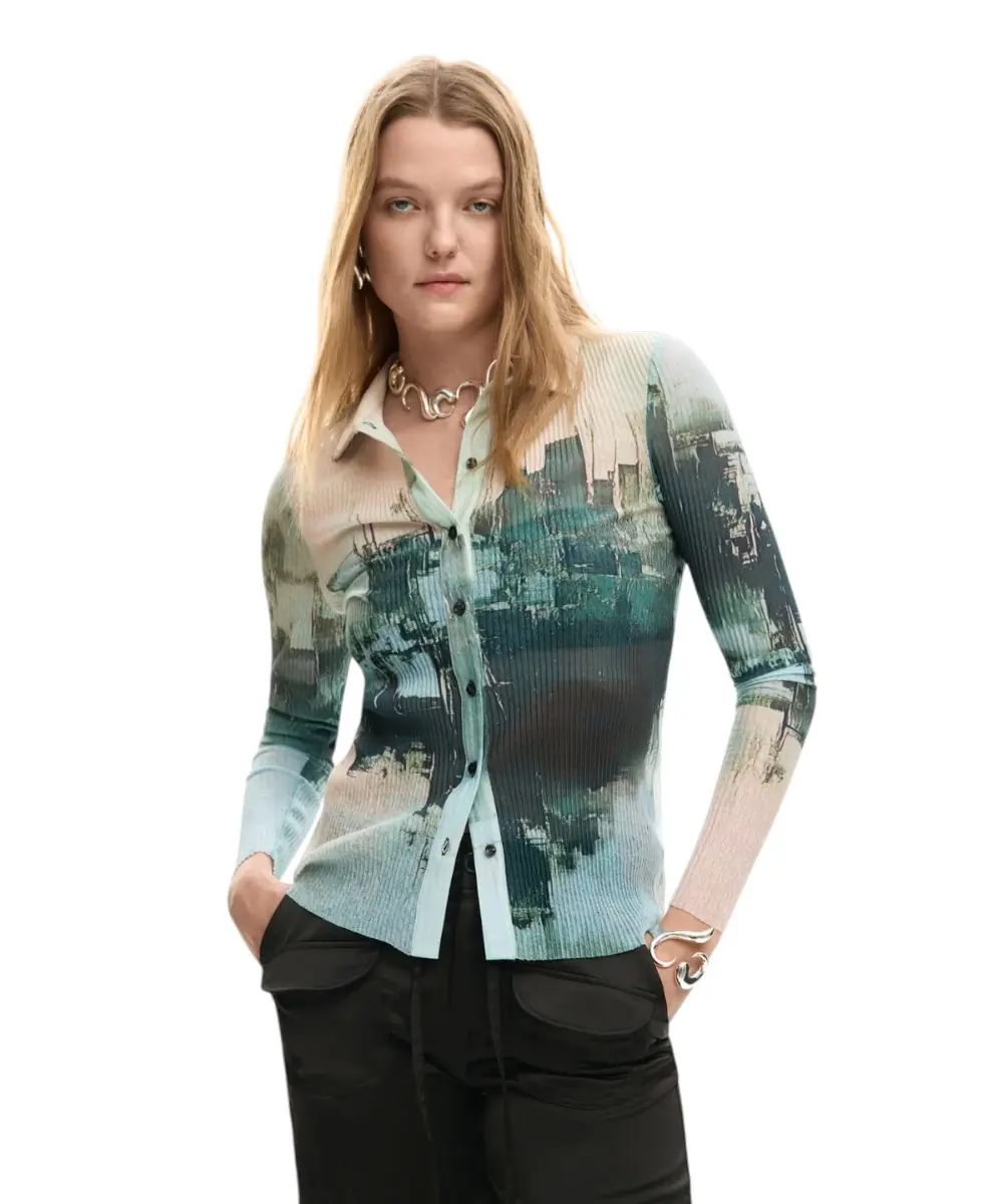 Αυτό το γυναικείο πουκάμισο της Desigual (σειρά Roterdam) αποτελεί μια ζωντανή και καλλιτεχνική προσθήκη στην ανοιξιάτικη γκαρνταρόμπα. Διαθέτει ένα εντυπωσιακό τυπωμένο μοτίβο (stampa) σε πράσινες (VE2052) αποχρώσεις, προσφέροντας έναν αέρα ανανέωσης και μοναδικότητας που χαρακτηρίζει το brand.