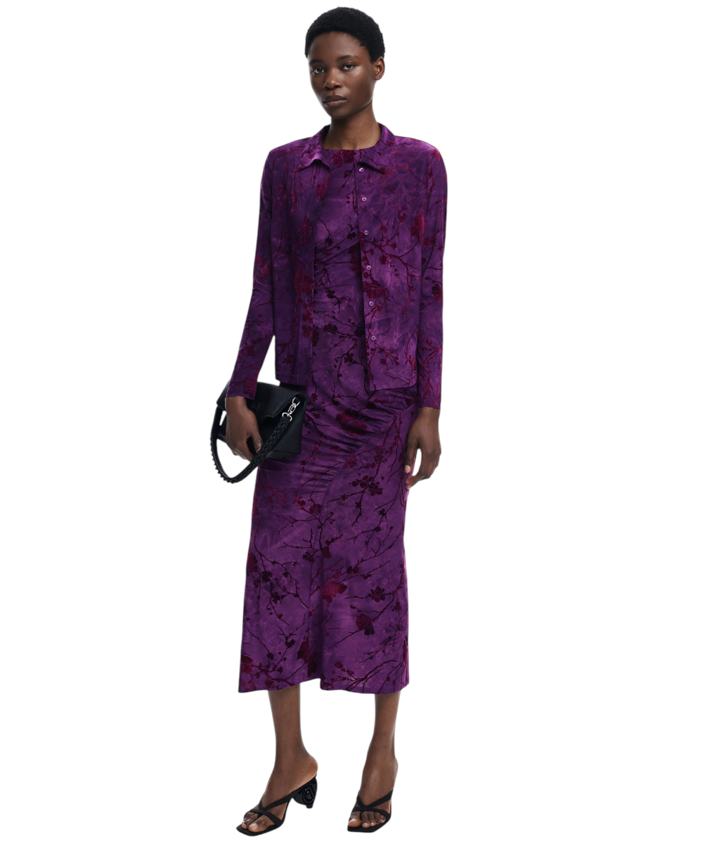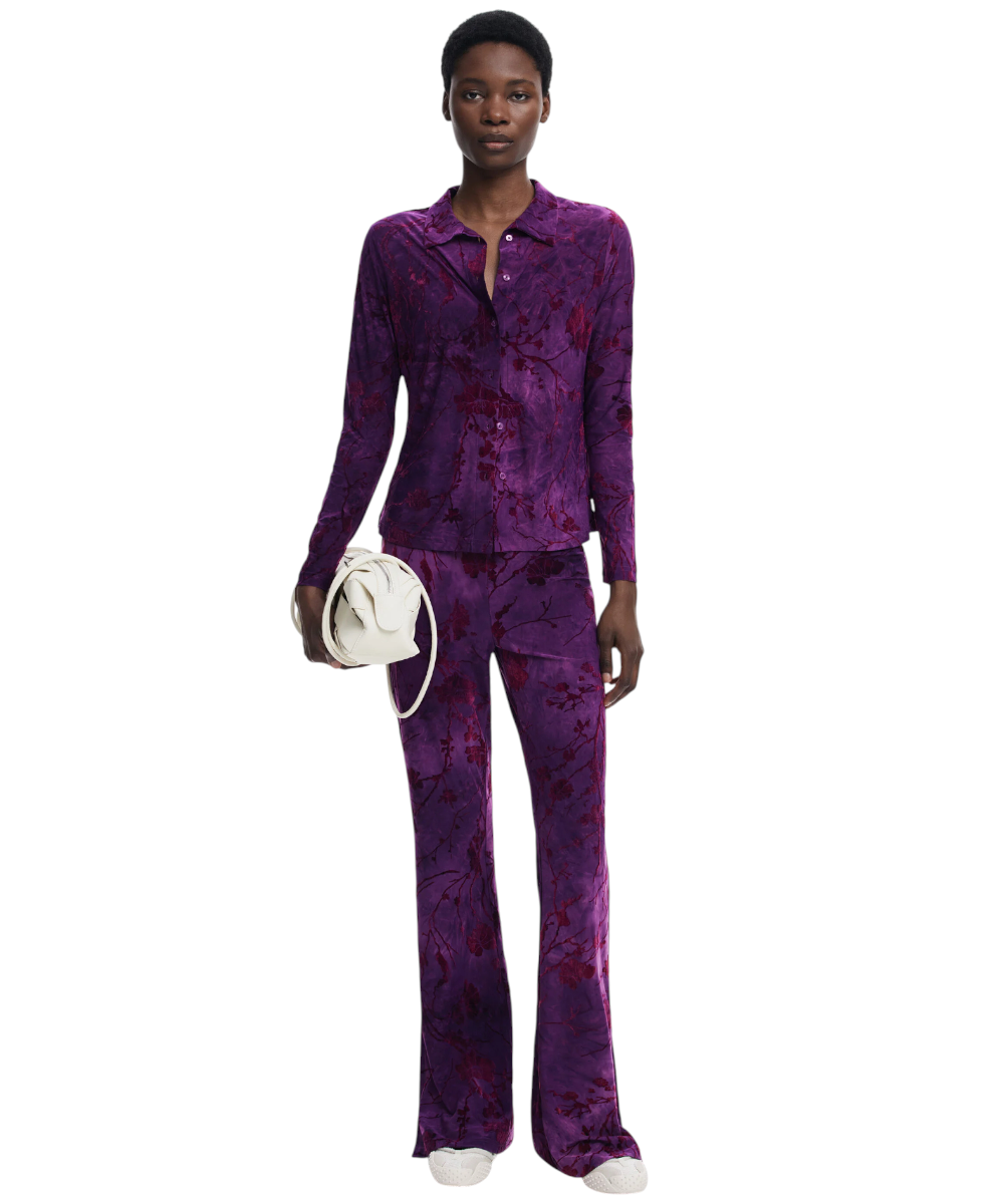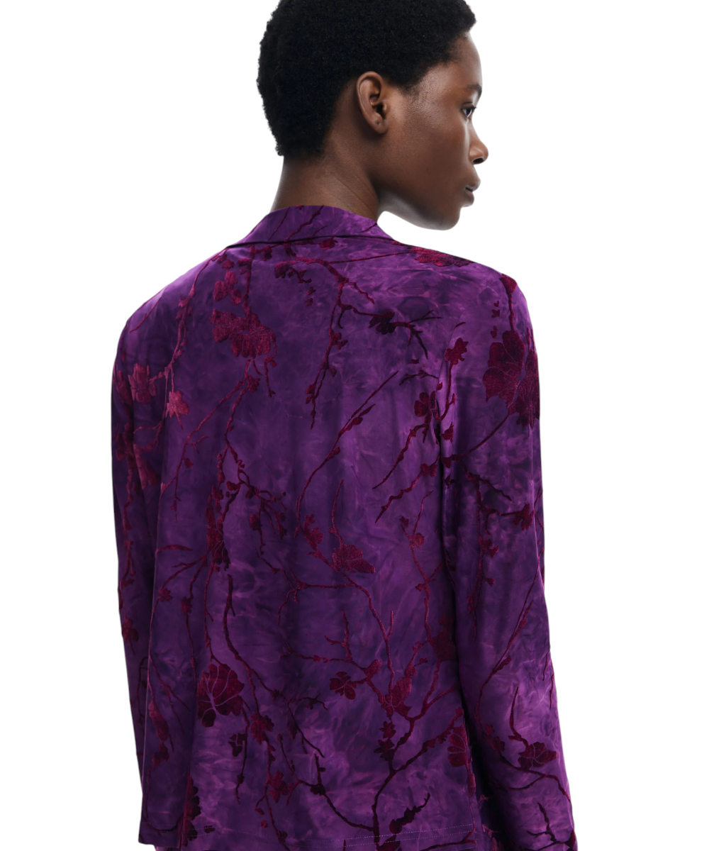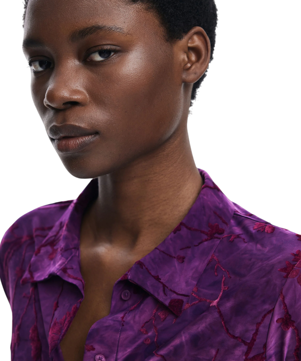 Μπλούζα της Desigual με υφή μακρυμάνικη, με μπροστινό κούμπωμα και λουλουδάτο σχέδιο εμπνευσμένο από την Ανατολή σε μοβ αποχρώσεις.