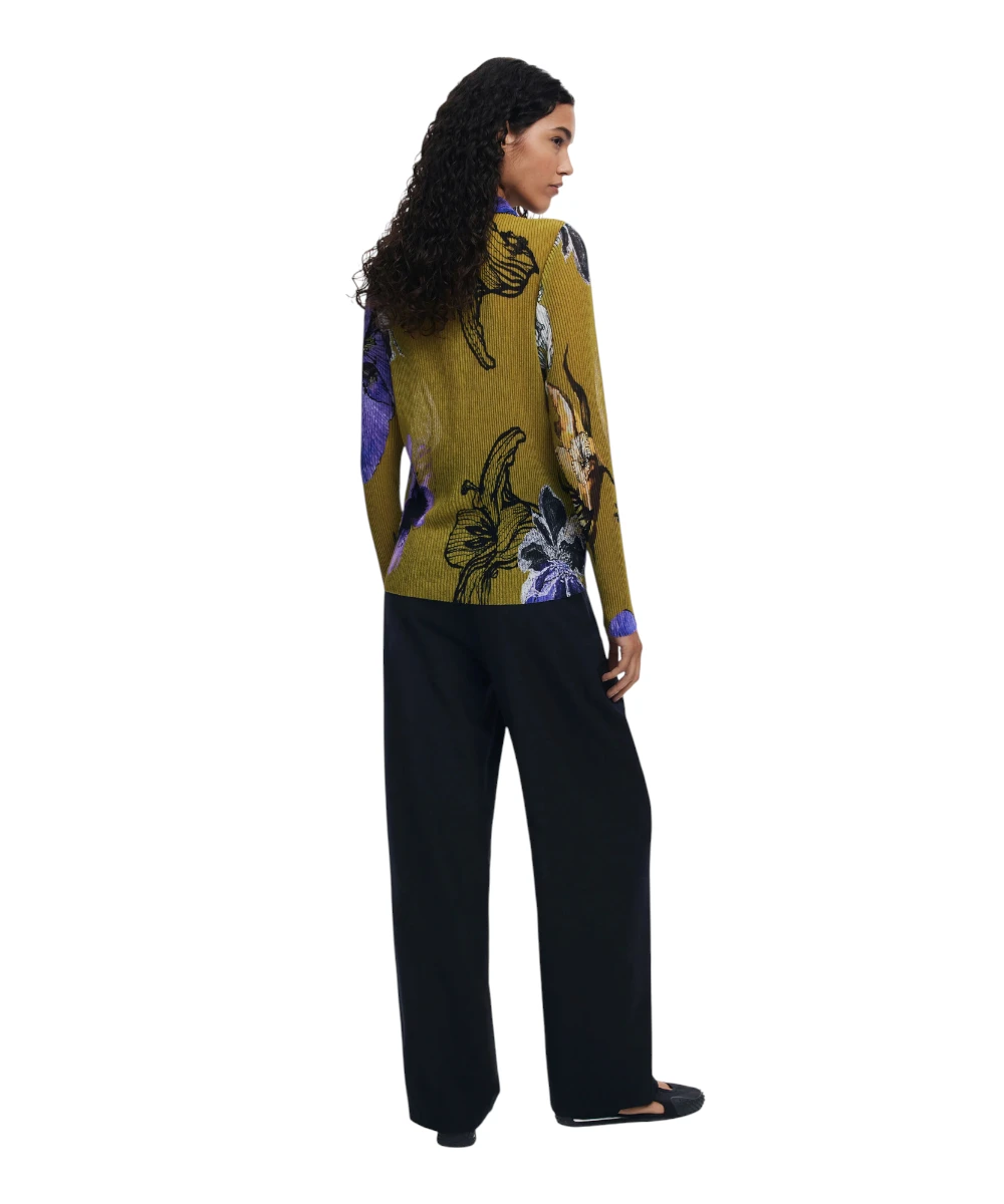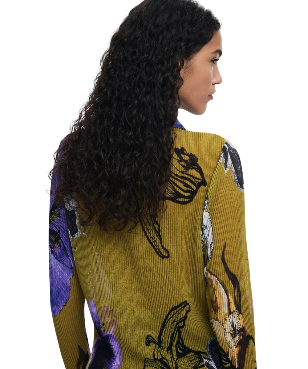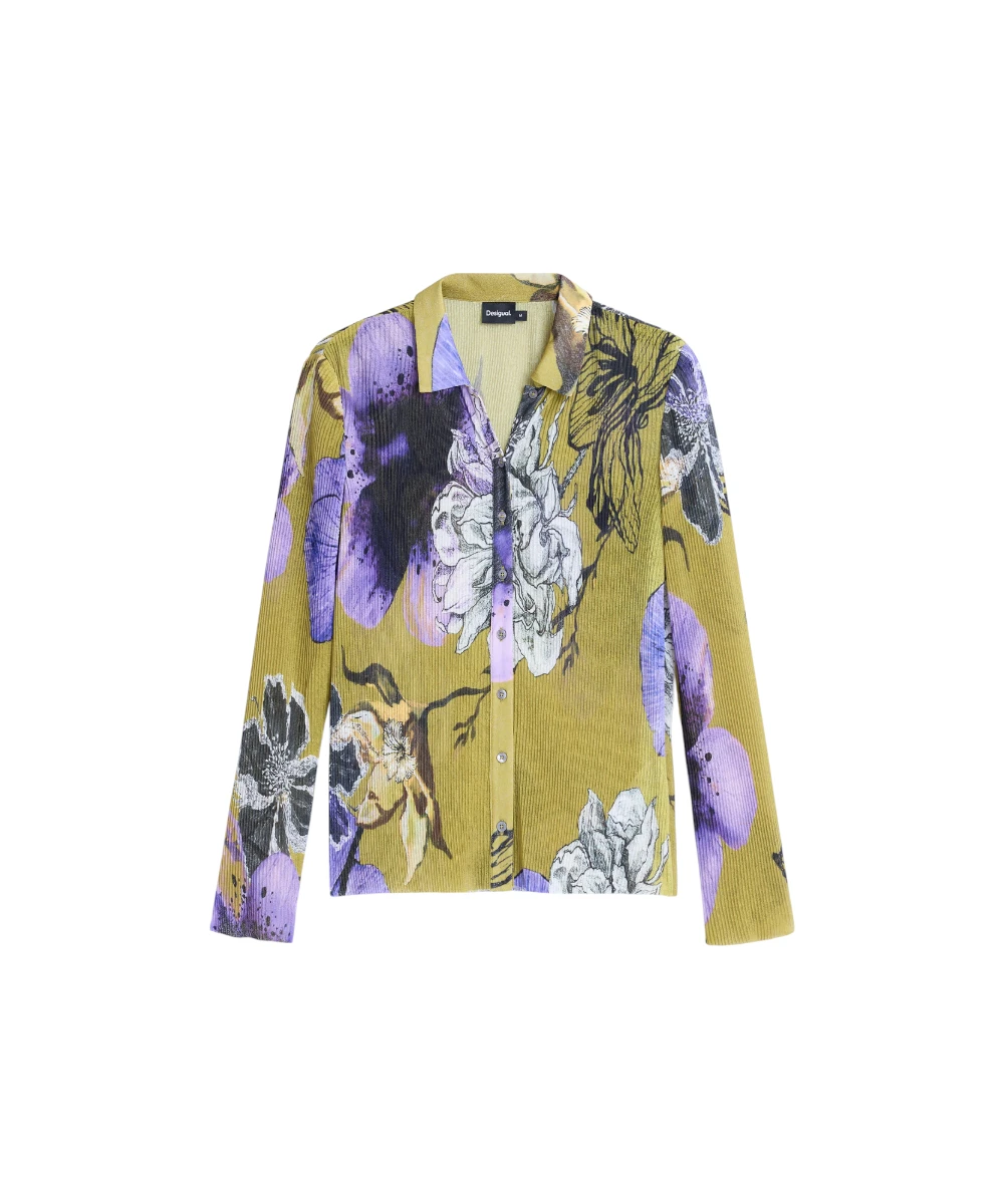 Εφαρμοστό μπλουζάκι της Desigual με πλισέ υφή, μακρυμάνικο, με μπροστινό κούμπωμα και λουλουδάτο σχέδιο σχεδιασμένο από τον Monsieur Christian Lacroix.