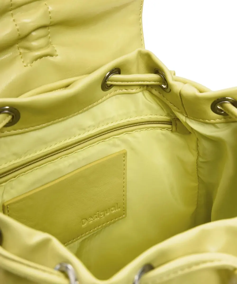 Contrast Details & Logo: Οι λεπτομέρειες σε αντίθεση (contrast details) και το λογότυπο της Desigual τονίζουν τη μοντέρνα αισθητική πάνω στο leather-effect υλικό.