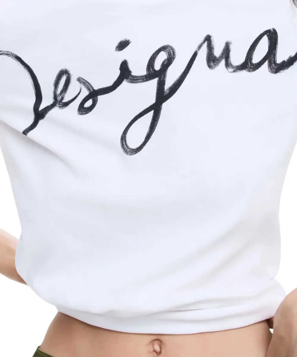 Styling Tip: Λόγω της ουδετερότητας του λευκού, μπορείτε να το συνδυάσετε με μια midi πλισέ φούστα σε οποιοδήποτε έντονο χρώμα ή floral μοτίβο. Ένα ζευγάρι πολύχρωμα sneakers θα δώσει την απαραίτητη ένταση στο σύνολο, αναδεικνύοντας το τυπογραφικό τύπωμα στο στήθος.