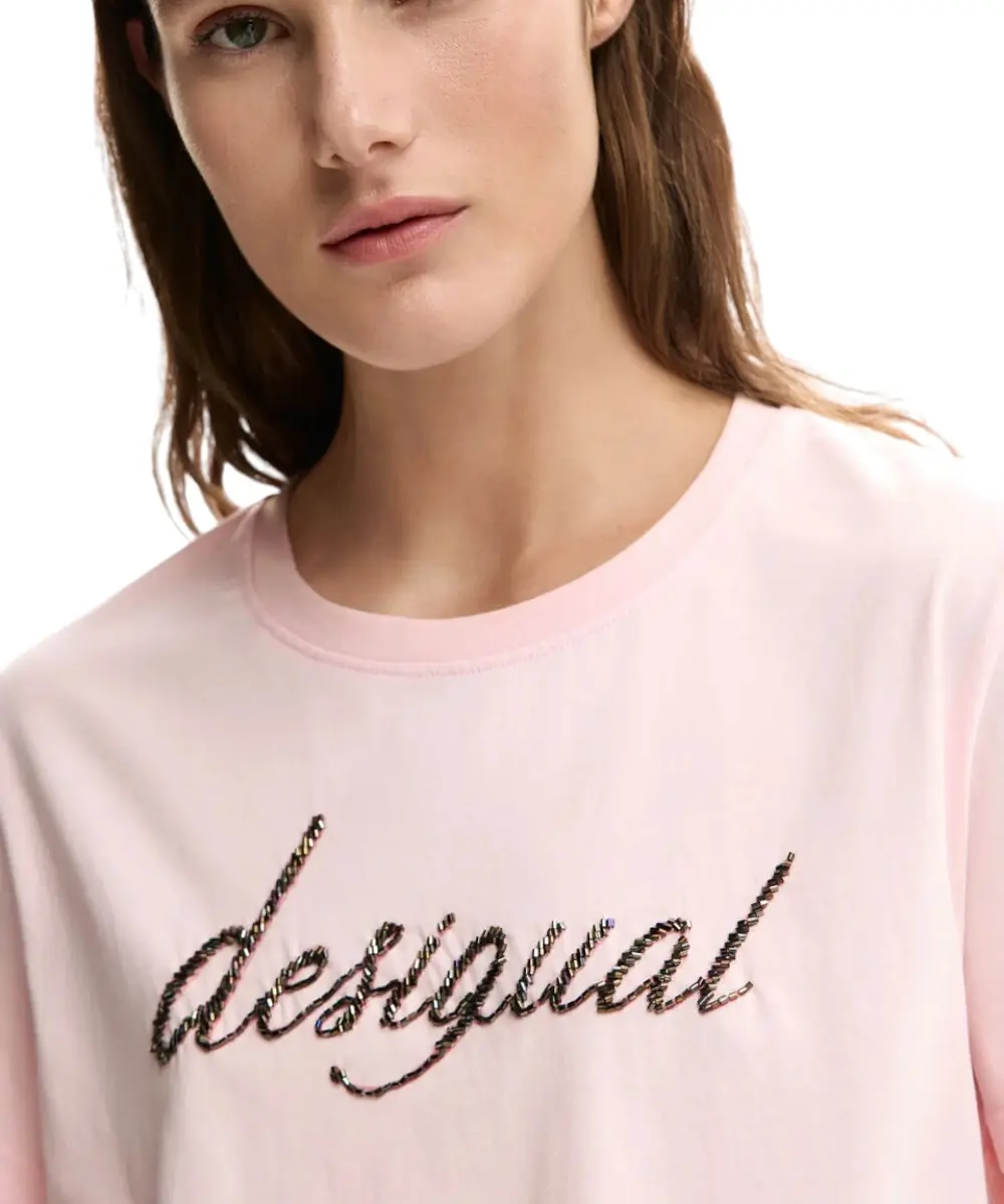 Styling Tip: Καθώς η βάση είναι ροζ, μπορείτε να επιλέξετε αξεσουάρ σε μεταλλικές αποχρώσεις (όπως ασημί ή ροζ χρυσό) που θα συμπληρώσουν τη λάμψη από τις χάντρες του κεντήματος, δημιουργώντας ένα ολοκληρωμένο “glam-sport” look.