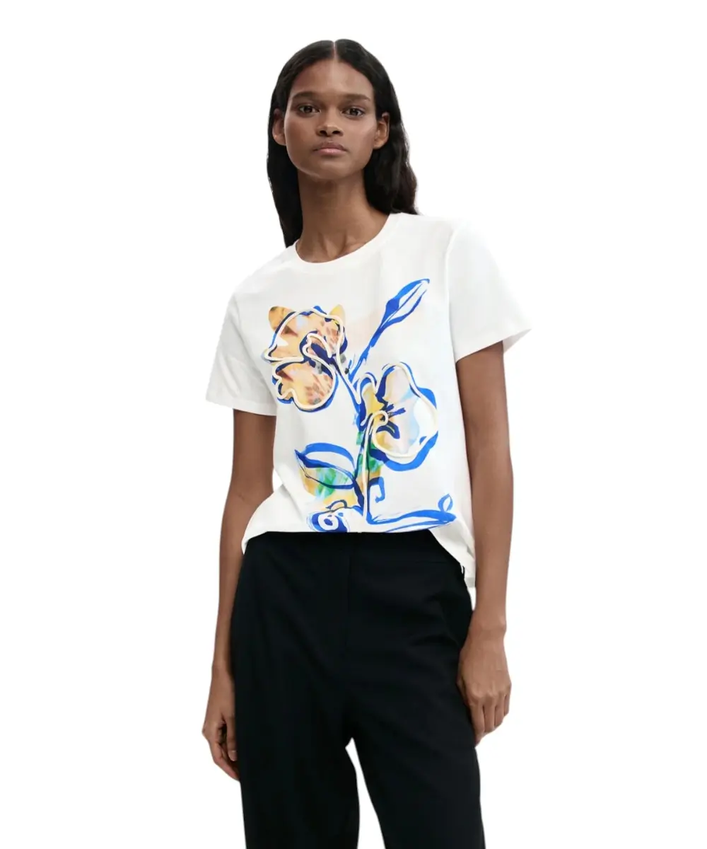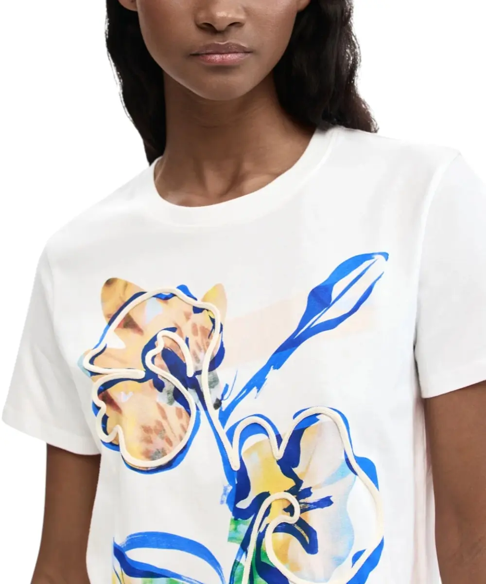 Το T-shirt Zurich από τη συλλογή Άνοιξη/Καλοκαίρι 2026 είναι η επιτομή της φρεσκάδας και του σύγχρονου design. Σε καθαρή λευκή (BI1000) βάση από 100% βαμβάκι, αυτό το κομμάτι ξεχωρίζει για το εντυπωσιακό ψηφιακό τύπωμα λουλουδιών σε έντονη χρωματική αντίθεση, προσφέροντας μια καλλιτεχνική πινελιά στο κλασικό λευκό T-shirt.