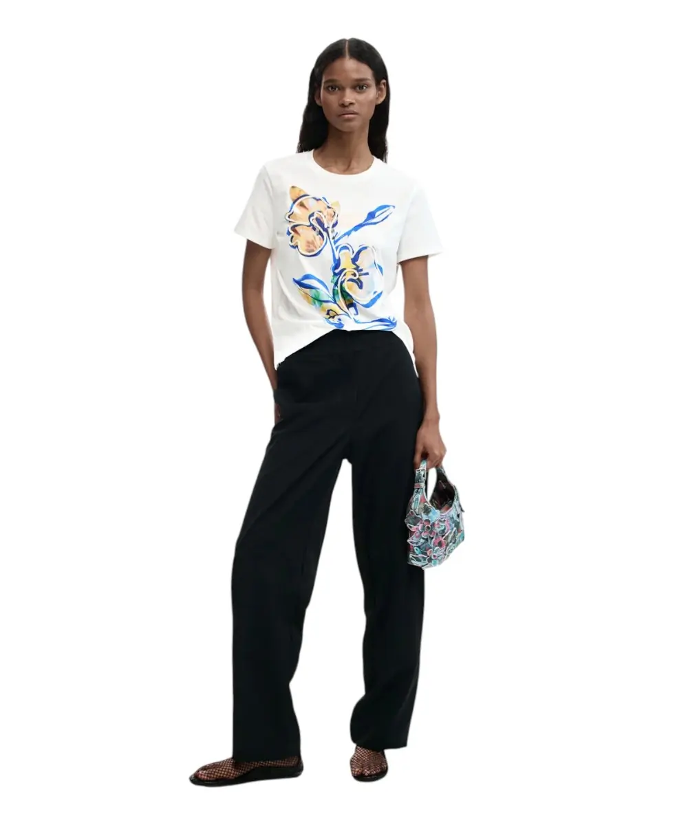 Crisp Floral Look: Η λευκή βάση του Zurich αναδεικνύεται μοναδικά με τα jeans Fair. Το ψηφιακό print των λουλουδιών δημιουργεί μια υπέροχη χρωματική γέφυρα με τα κεντήματα του denim, προσφέροντας ένα ολοκληρωμένο και φωτεινό σύνολο.