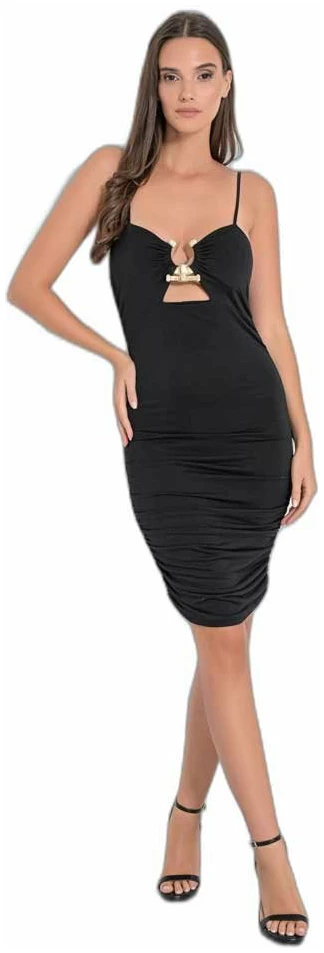 Κοντό εφαρμοστό φόρεμα με ελαστικές ρυθμιζόμενες τιράτες. Στήθος με ενσωματωμένα cups και μεταλλική αγκράφα. Σχέδιο με σούρες στο πλάι. Slip-on εφαρμογή. Σύνθεση : 95% POLYESTER 5%ELASTANE