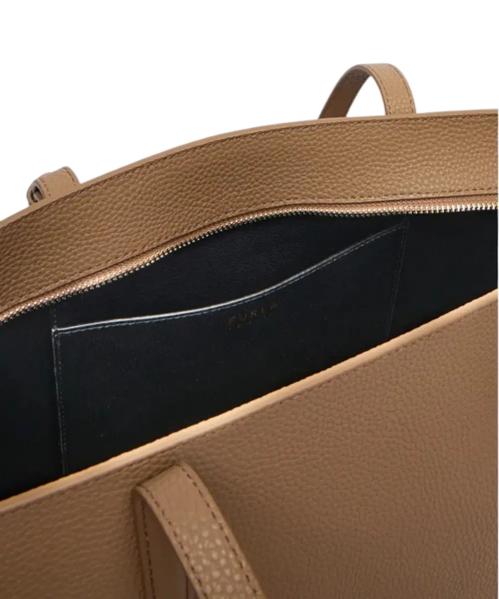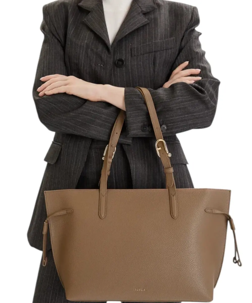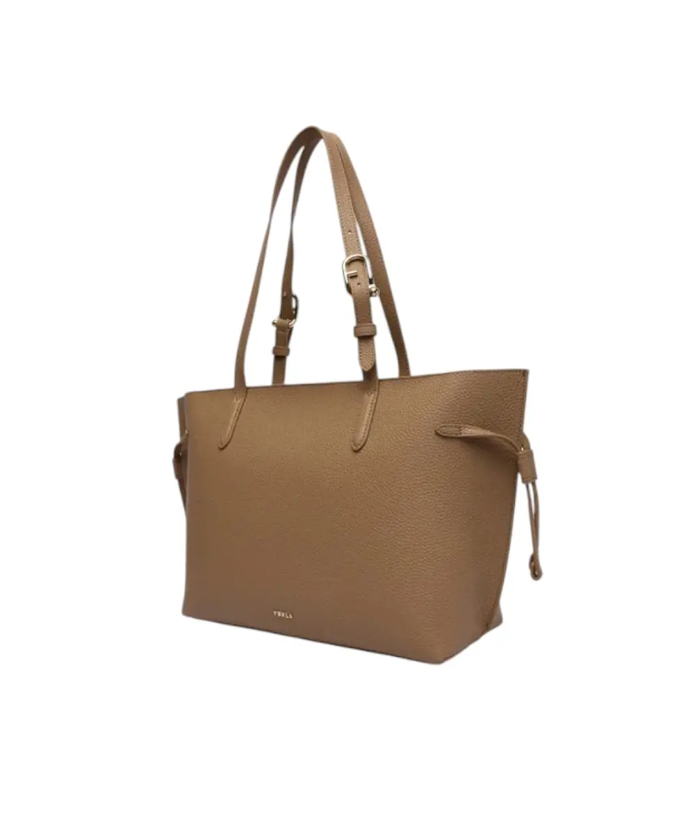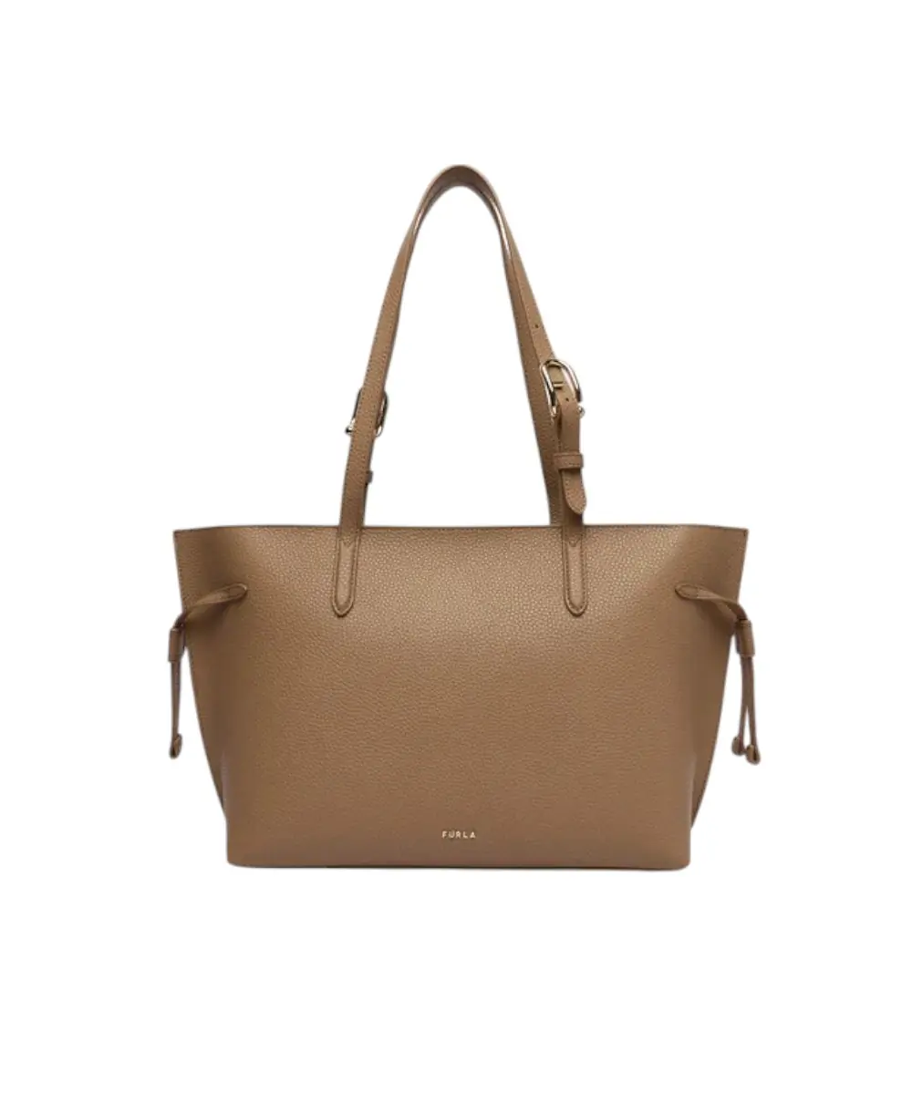 Η Furla Ava Tote είναι μια κομψή τσάντα χειρός κατασκευασμένη από ποιοτικό δέρμα. Διαθέτει δύο ρυθμιζόμενους ιμάντες ώμου, εσωτερική θήκη και κλείσιμο με φερμουάρ, ενώ οι πλευρικές λεπτομέρειες με coulisse προσθέτουν ένα μοντέρνο και πρακτικό στοιχείο. Το λογότυπο Furla ολοκληρώνει διακριτικά το στυλ.
