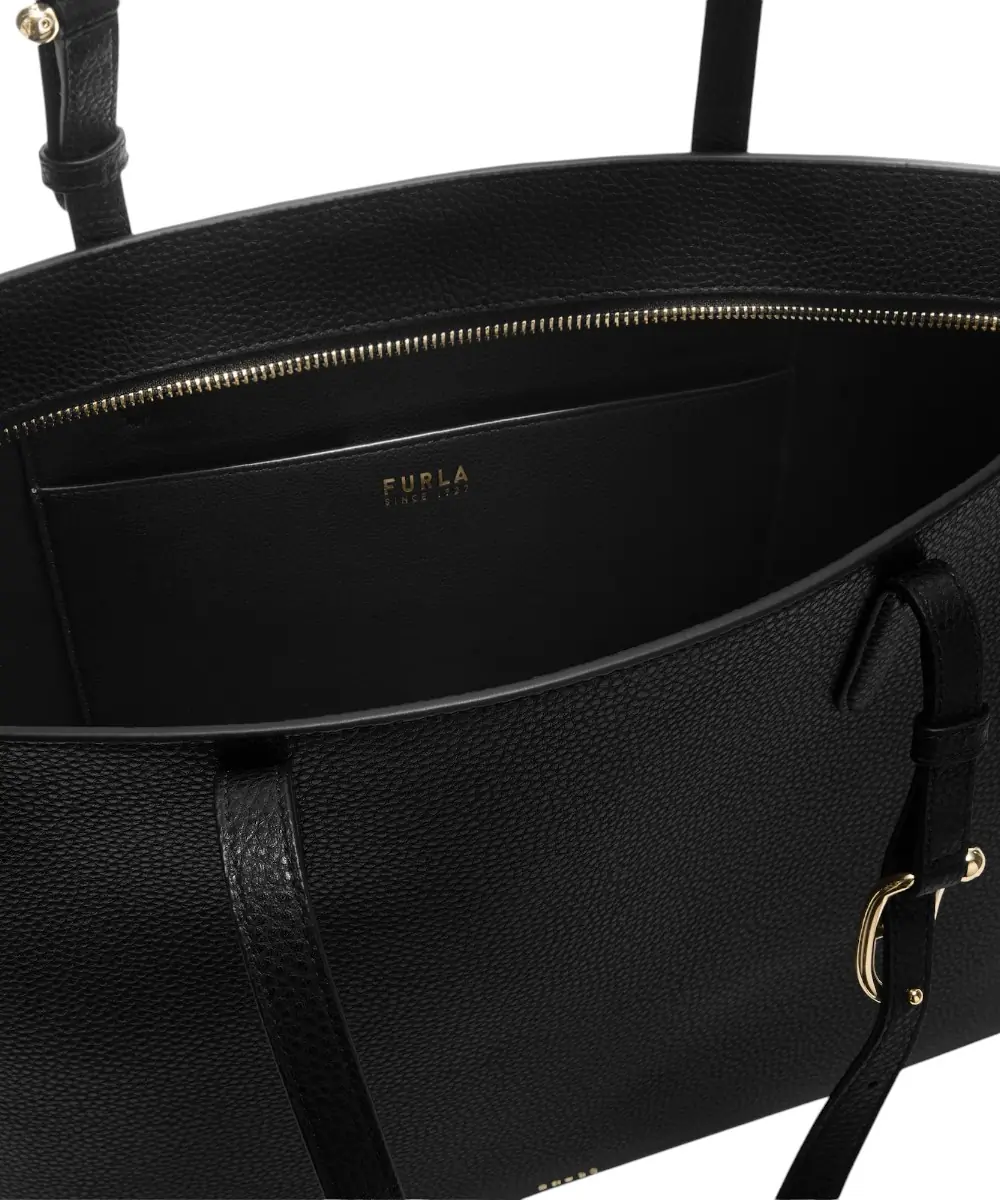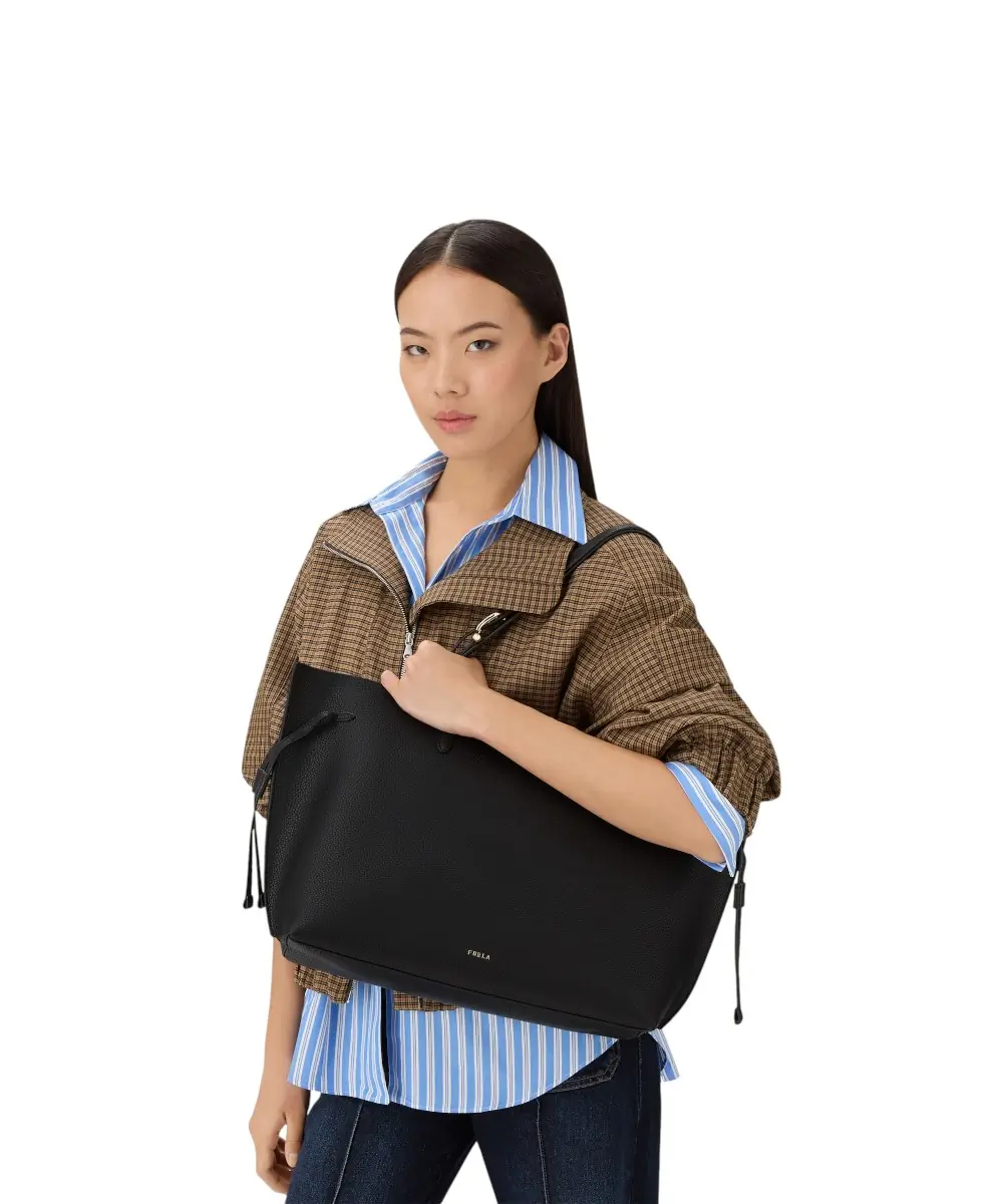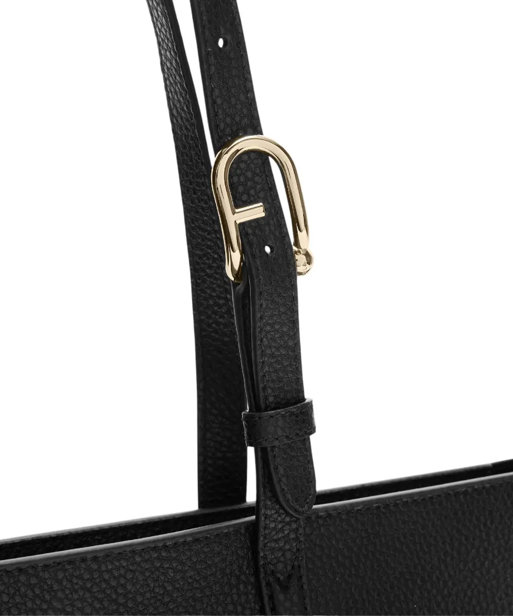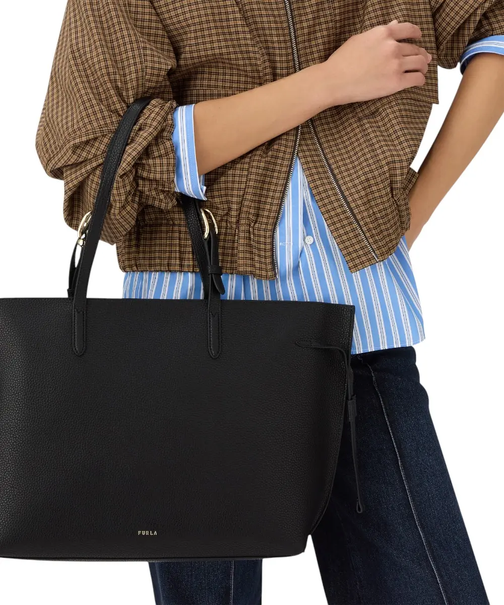 Η Furla Ava Tote είναι κατασκευασμένη από κομψό δέρμα μόσχου με αντίθετο χρωματικό μπλοκ στην πίσω πλευρά. Η ευρύχωρη σιλουέτα της προσφέρει άφθονο χώρο για όλα τα απαραίτητα αντικείμενα σας. Μπορεί να φορεθεί στον ώμο ή ως τσάντα χειρός χάρη στις δύο μακριές χειρολαβές, οι οποίες ρυθμίζονται μέσω των μεταλλικών λεπτομερειών με το λογότυπο Furla Arch.