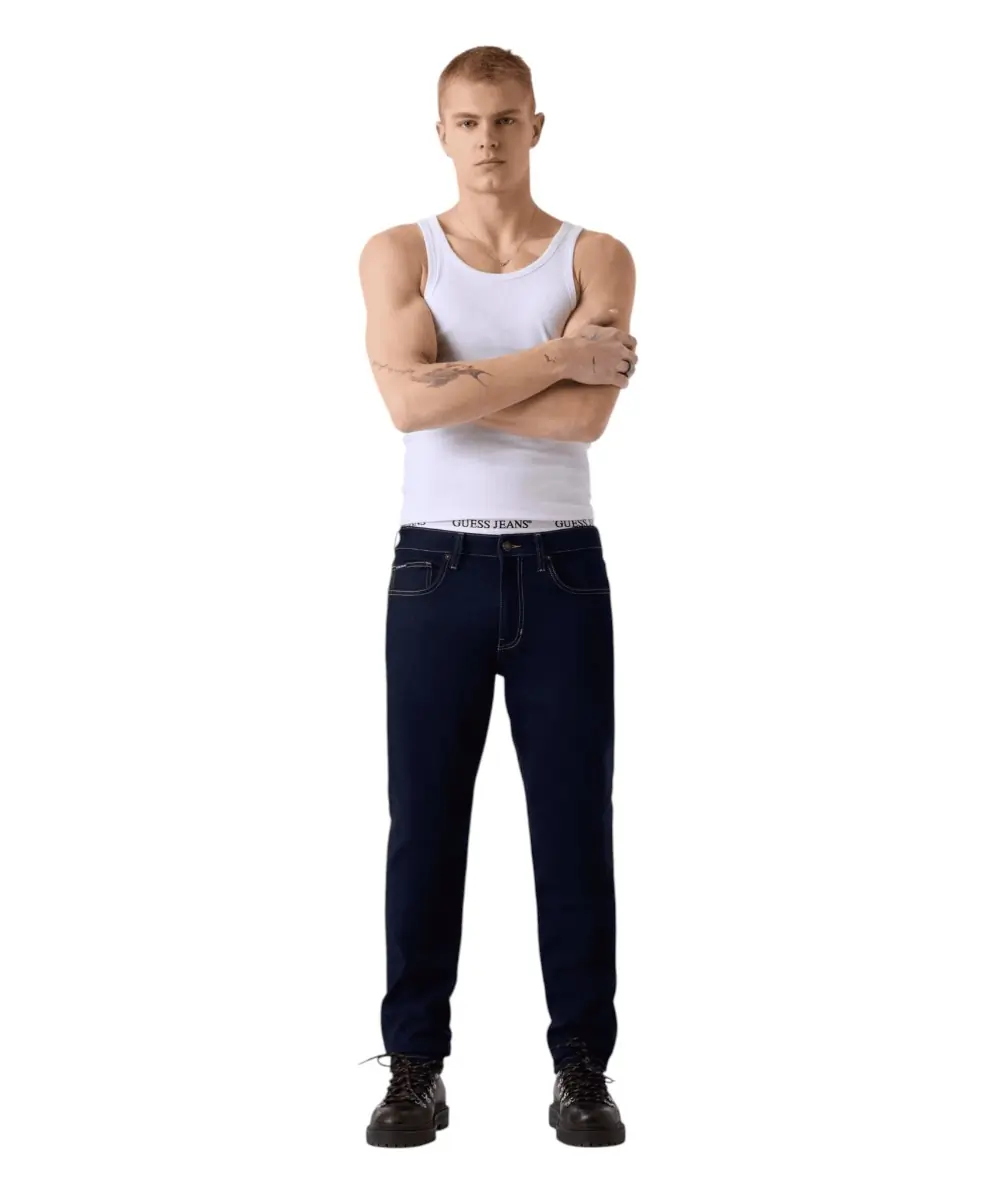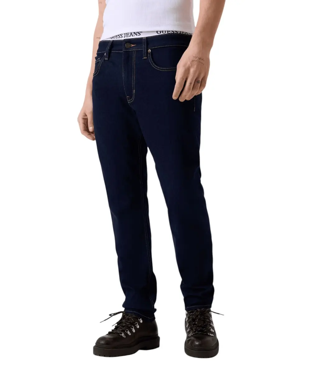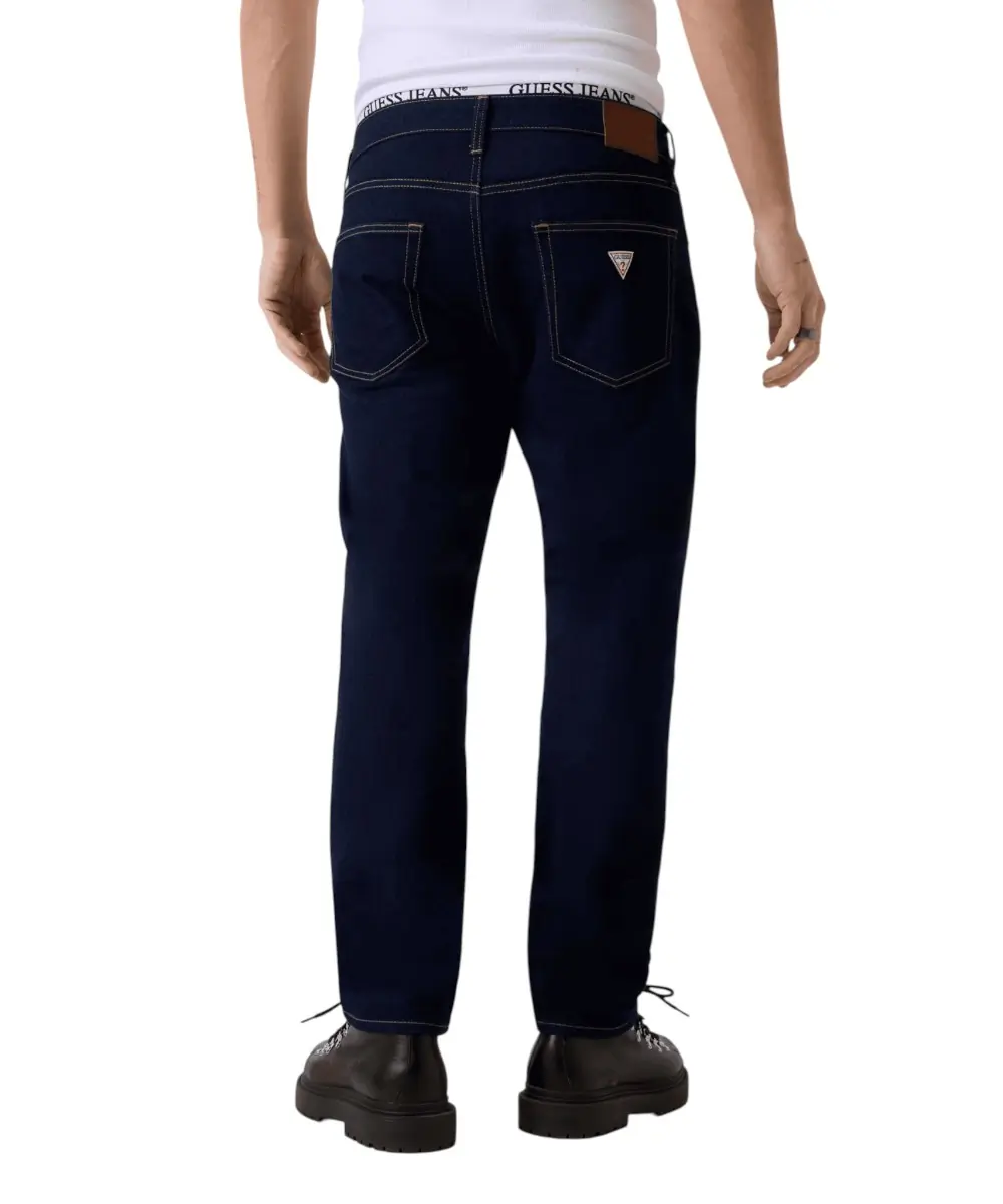 Το ανδρικό τζιν παντελόνι της Guess Jeans αποτελεί μια εκλεπτυσμένη επιλογή για την ανοιξιάτικη γκαρνταρόμπα, συνδυάζοντας τη βιωσιμότητα με την άψογη εφαρμογή. Κατασκευασμένο από μείγμα που περιέχει οργανικό βαμβάκι, αυτό το τζιν σε rinse πλύσιμο (βαθύ σκούρο μπλε) προσφέρει μια καθαρή και προσεγμένη εμφάνιση, ιδανική για κάθε περίσταση.
