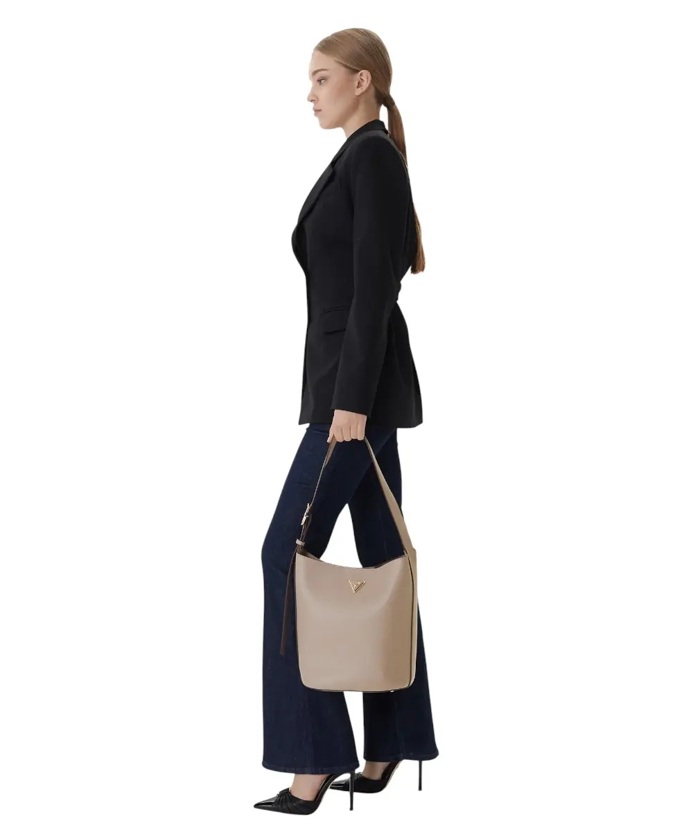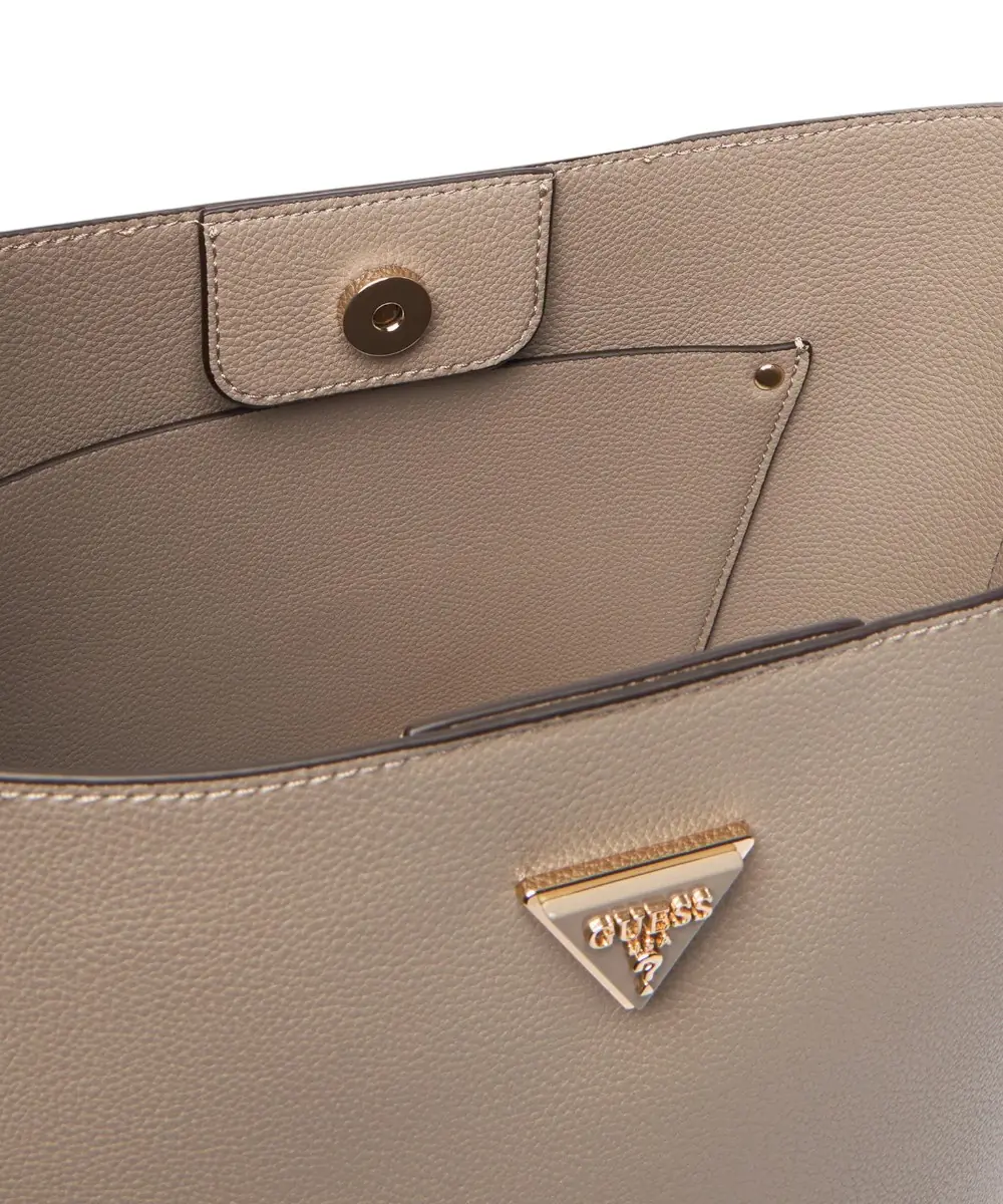 Η Guess Meridian II HWBG6974040-DRT είναι μια κομψή και πρακτική μικρή τσάντα, ιδανική για καθημερινή χρήση. Κατασκευασμένη από premium faux leather (απομίμηση φυσικού δέρματος) με σκληρυμένο κάτω μέρος και μεταλλικά πόδια, διατηρεί το σχήμα της και προσφέρει ανθεκτικότητα και προστασία.