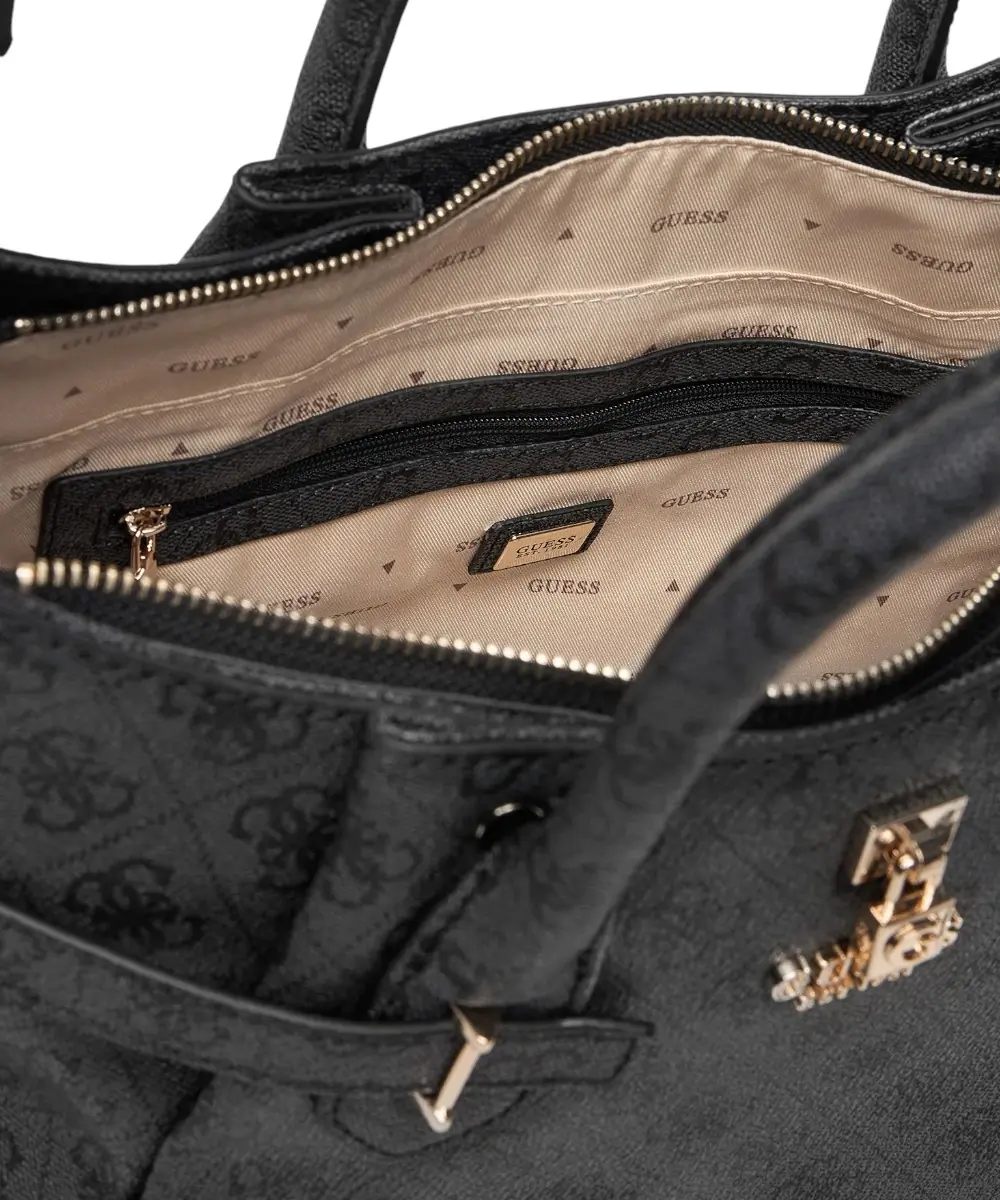 Το σετ περιλαμβάνει υφασμάτινο πουγκί αποθήκευσης, που προστατεύει την τσάντα από τη σκόνη, ενώ η εξατομικευμένη φόδρα με το λογότυπο Guess προσθέτει premium αίσθηση. Η τσάντα χαρακτηρίζεται από μοντέρνο σχεδιασμό, χρυσές λεπτομέρειες και διακριτικό τύπωμα λογοτύπου 4G.